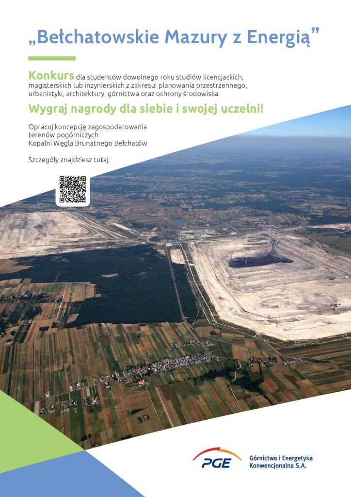 Spółka PGE Górnictwo i Energetyka Konwencjonalna z Grupy PGE ogłasza konkurs pn.: „Bełchatowskie Mazury z Energią”, do udziału w którym zaprasza studentów wszystkich roczników studiów licencjackich, magisterskich lub inżynierskich z zakresu planowania przestrzennego, urbanistyki, architektury, górnictwa oraz ochrony środowiska. Celem konkursu jest wyłonienie najlepszej koncepcji zagospodarowania terenów pogórniczych Kopalni Węgla Brunatnego Bełchatów po zakończeniu wydobycia – informuje Departament Komunikacji PGE GiEK.