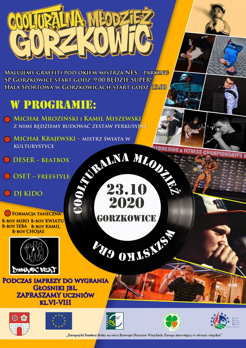 Młodzież klas 6-8 ze Szkoły Podstawowej w Gorzkowicach, weźmie udział w niecodziennym wydarzeniu. Podczas akcji Coolturalna Młodzież Gorzkowic uczniowie poznają kulturę hip-hopową. Zobaczą między innymi jak maluje się graffiti czy wezmą udział w lekcji beatboxu.