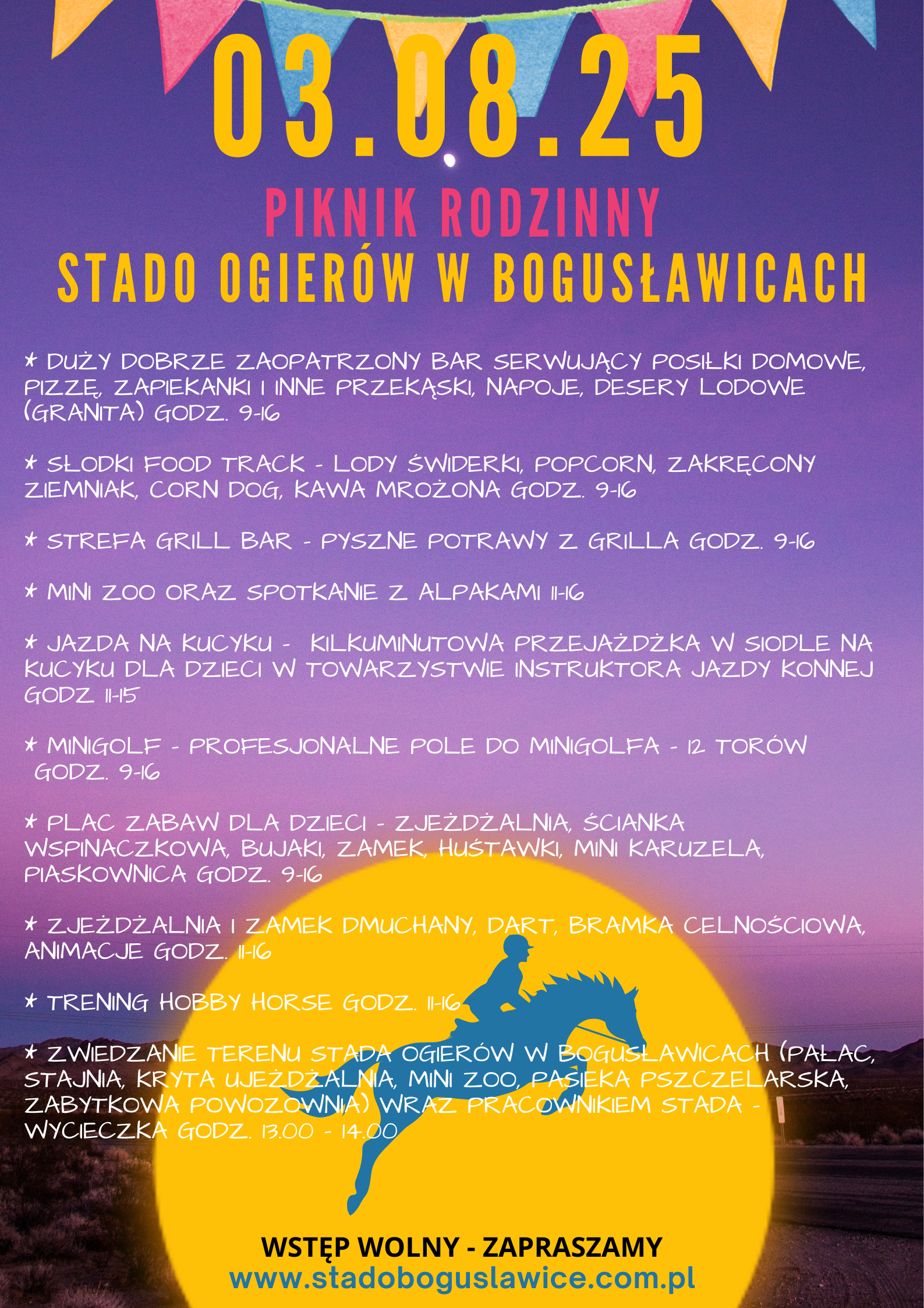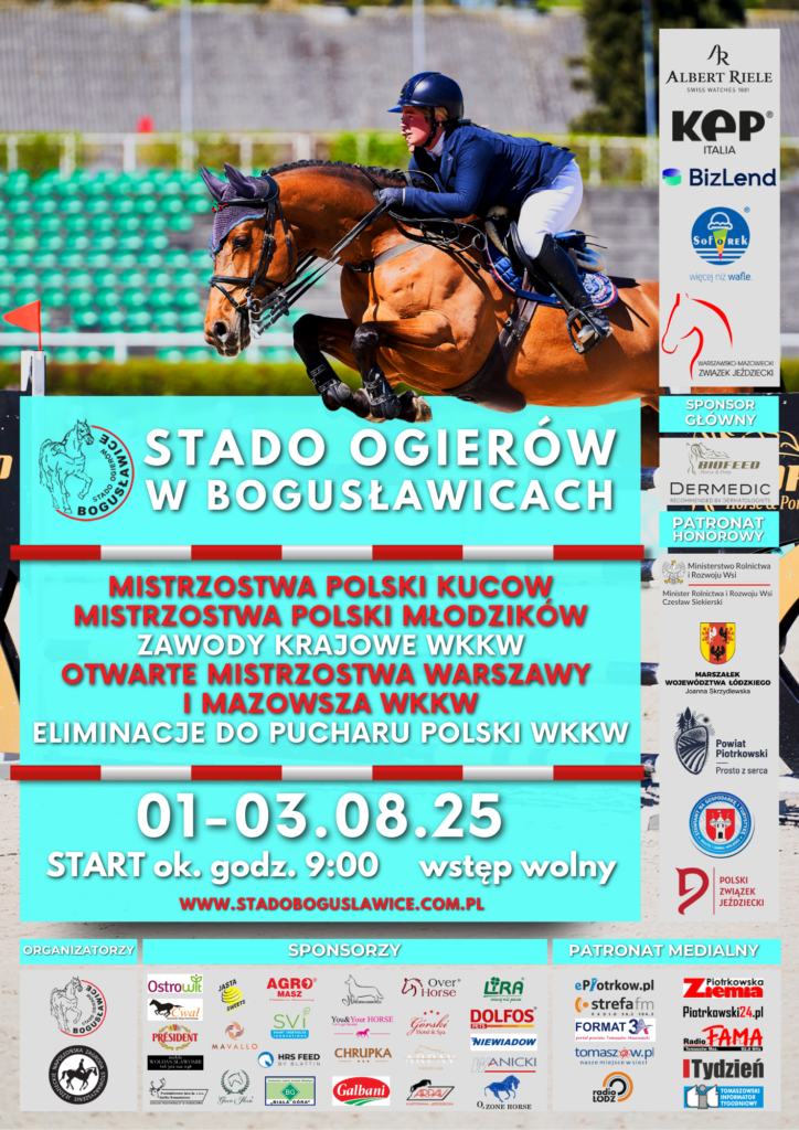 W dniach 1–3 sierpnia 2025 roku Stado Ogierów w Bogusławicach stanie się areną najważniejszych wydarzeń jeździeckich sezonu. Podczas trzydniowego święta sportu rozegrane zostaną: