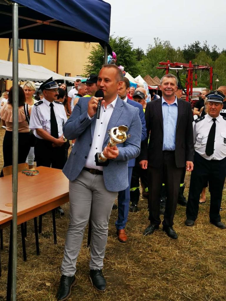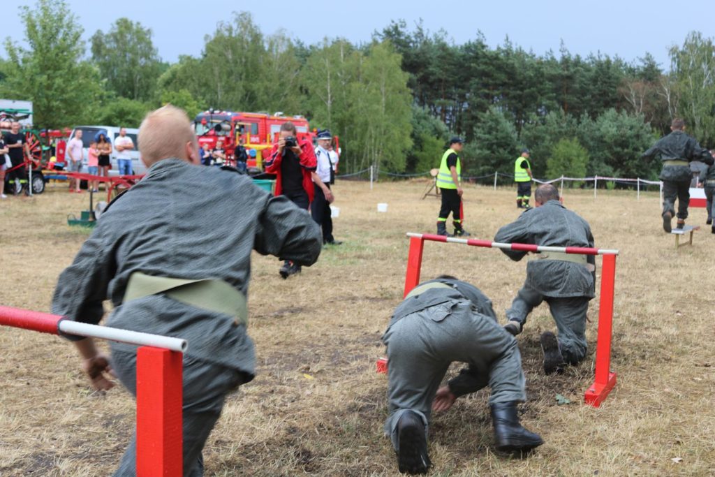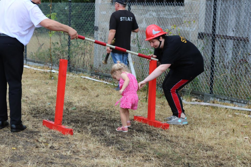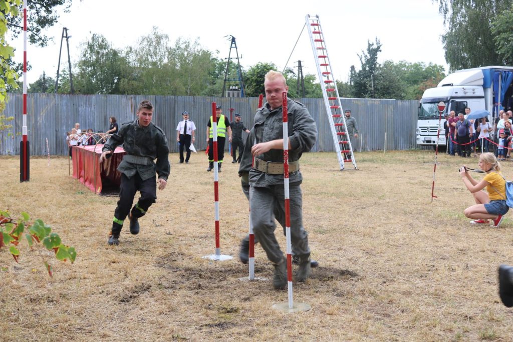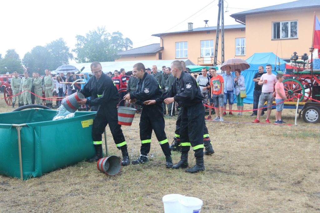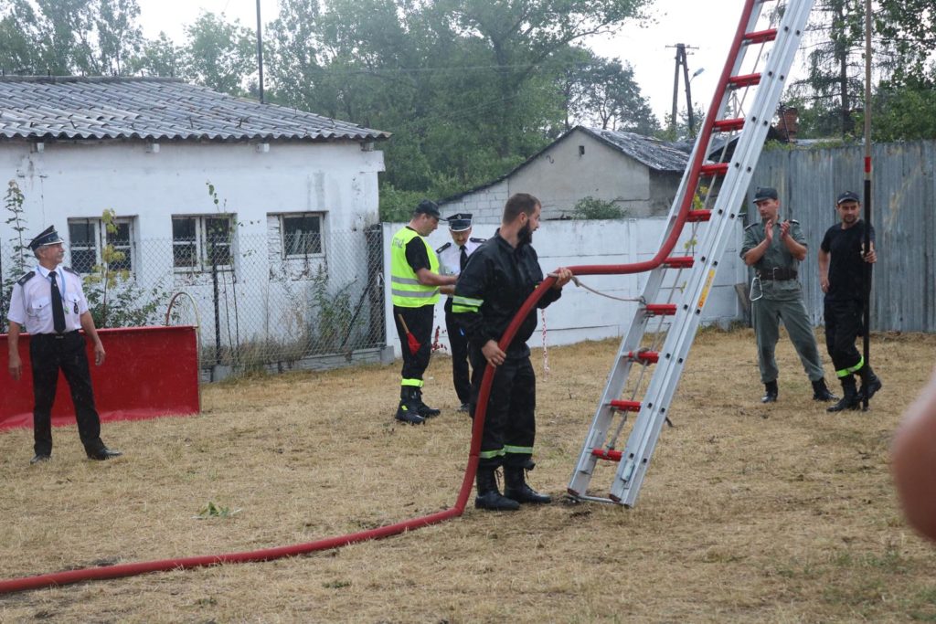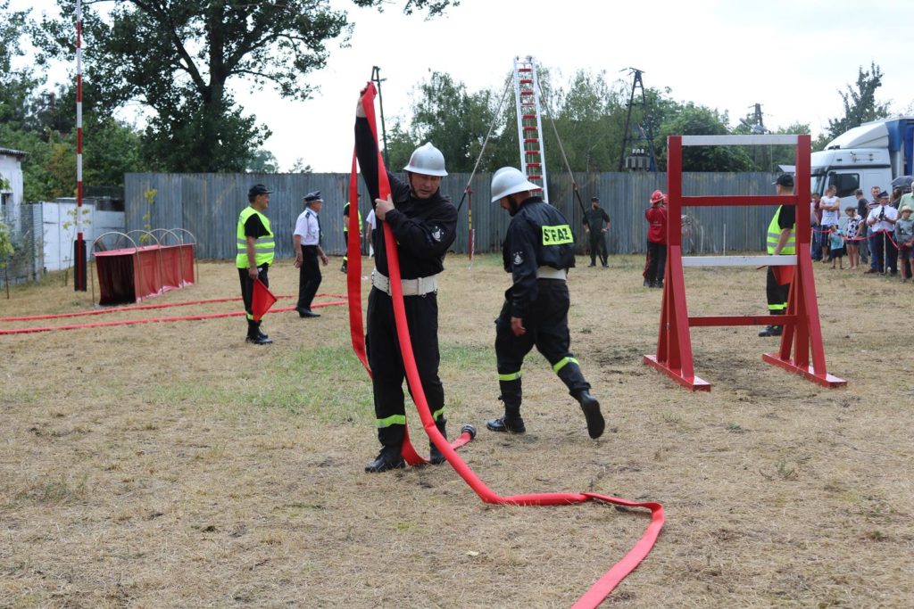 By pokonać tor przeszkód trzeba było przebiec w specjalnym tunelu, pomiędzy pachołkami, na umieszczonej nad ziemią desce, przepiłować drewniany bal a także przepompować wodę i trafić sikawką do celu. – Rozpadało się ale to nic nie szkodzi. Rozpoczęliśmy podczas deszczu, bo przecież strażacy muszą ratować w każdej pogodzie. By pokonać tor przeszkód trzeba mieć trochę sprytu. Jeśli coś pójdzie nie tak, strażak otrzymuje punkty karne. Jedynie najmłodsi mają ulgi, reszta biegnie zgodnie z regulaminem – Mówi Michał Rytych, wiceprezes OSP w Przygłowie. – Tak naprawdę chodzi tu o dobrą zabawę. Jeśli zostaną państwo do końca, zobaczycie ile jest pierwszych miejsc – dodaje z uśmiechem Michał Rytych.