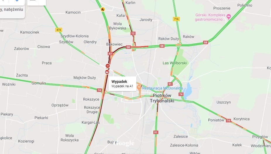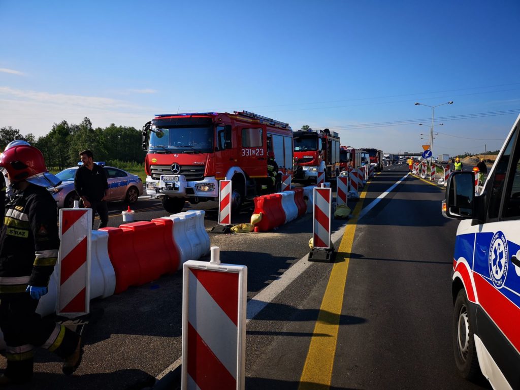 Na miejscu jest straż pożarna a także policja i pogotowie ratunkowe. Korki sięgają kilku kilometrów w obu kierunkach.