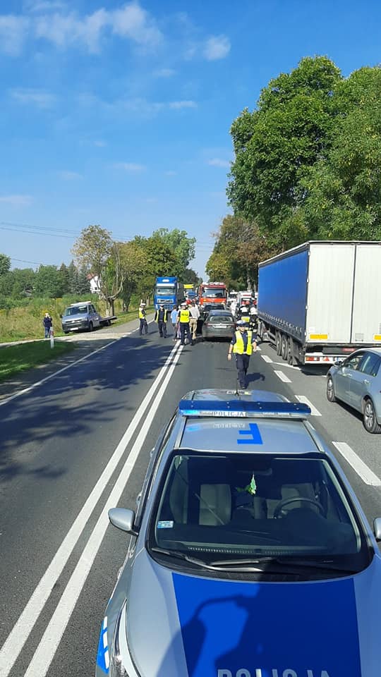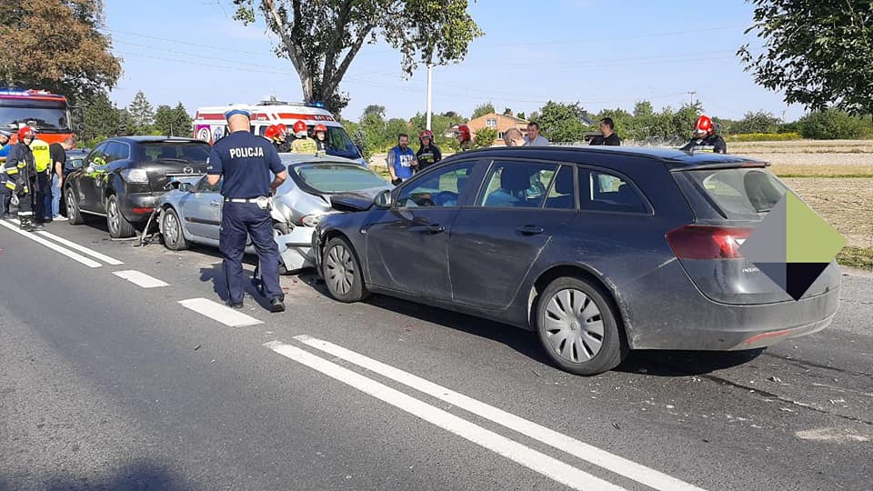 Zderzenie 4 pojazdów w Poniatowie. Ze wstępnych ustaleń wynika, że kierowca samochodu ciężarowego prawdopodobnie nie zachował należytej odległości pomiędzy poprzedzającymi go pojazdami, i najechał w tył pierwszej osobówki. W wyniku tego 3 samochody osobowe kolejno zderzyły się ze sobą. Na szczęście nikomu nic poważnego się nie stało. Pierwszej pomocy poszkodowanym udzielili strażacy z Przygłowa. Na miejscy byli także policjanci, zespół pogotowia ratunkowego oraz strażacy z Piotrkowa.