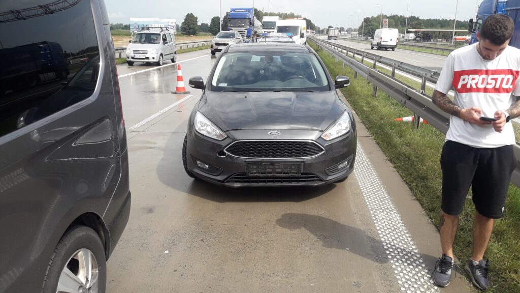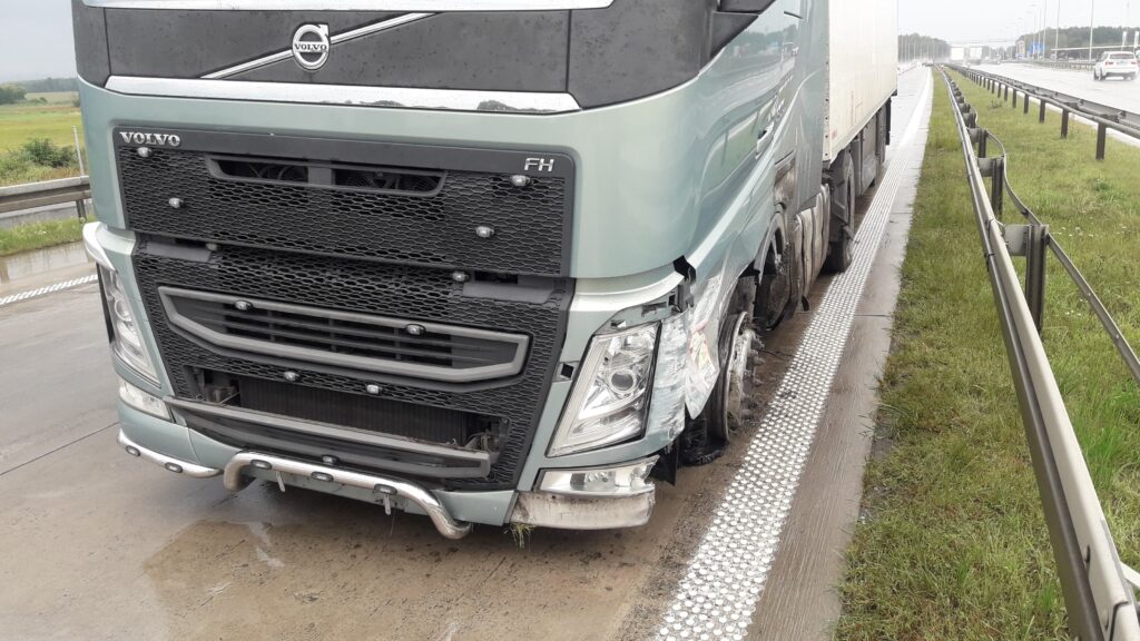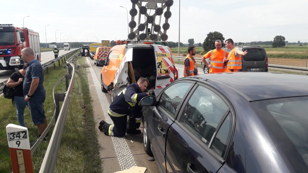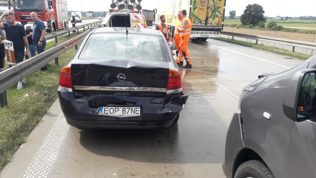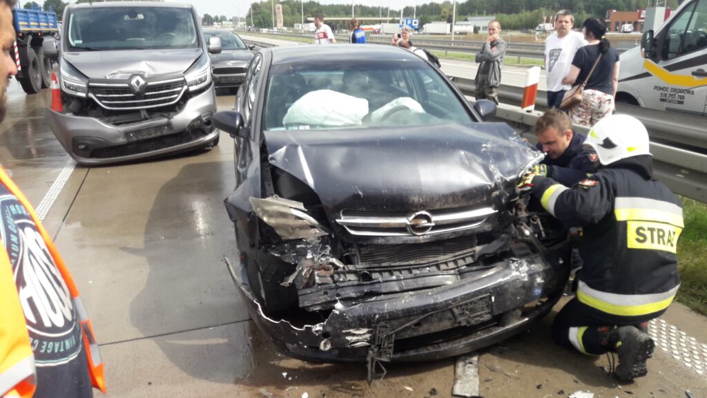 Jak wynika z wstępnych ustaleń, kierujący fordem jechał lewym pasem. W trakcie wyprzedzania pojazdu ciężarowego volvo doszło w tirze do wybuchu opony. Pojazd zaczął dociskać forda do lewych barierek. Na miejsce skierowane zostały służby drogowe, które zatrzymały się na lewym pasie zabezpieczając miejsce zdarzenia. Za służbami zatrzymał się kierujący oplem vectra, natomiast jadący za nim kierowca renault trafic nie zachował odpowiedniej odległości, najechał na tył vectry, a ta wpadła na służby drogowe. Następnie jadący lewym pasem kierujący fordem focusem, nie zachował odpowiedniej odległości i najechał na tył trafika. Wszyscy kierujący byli trzeźwi. Trwa usuwanie skutków tego zdarzenia.
