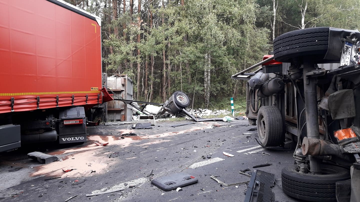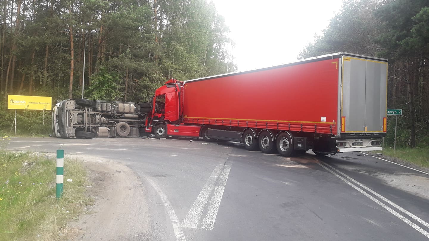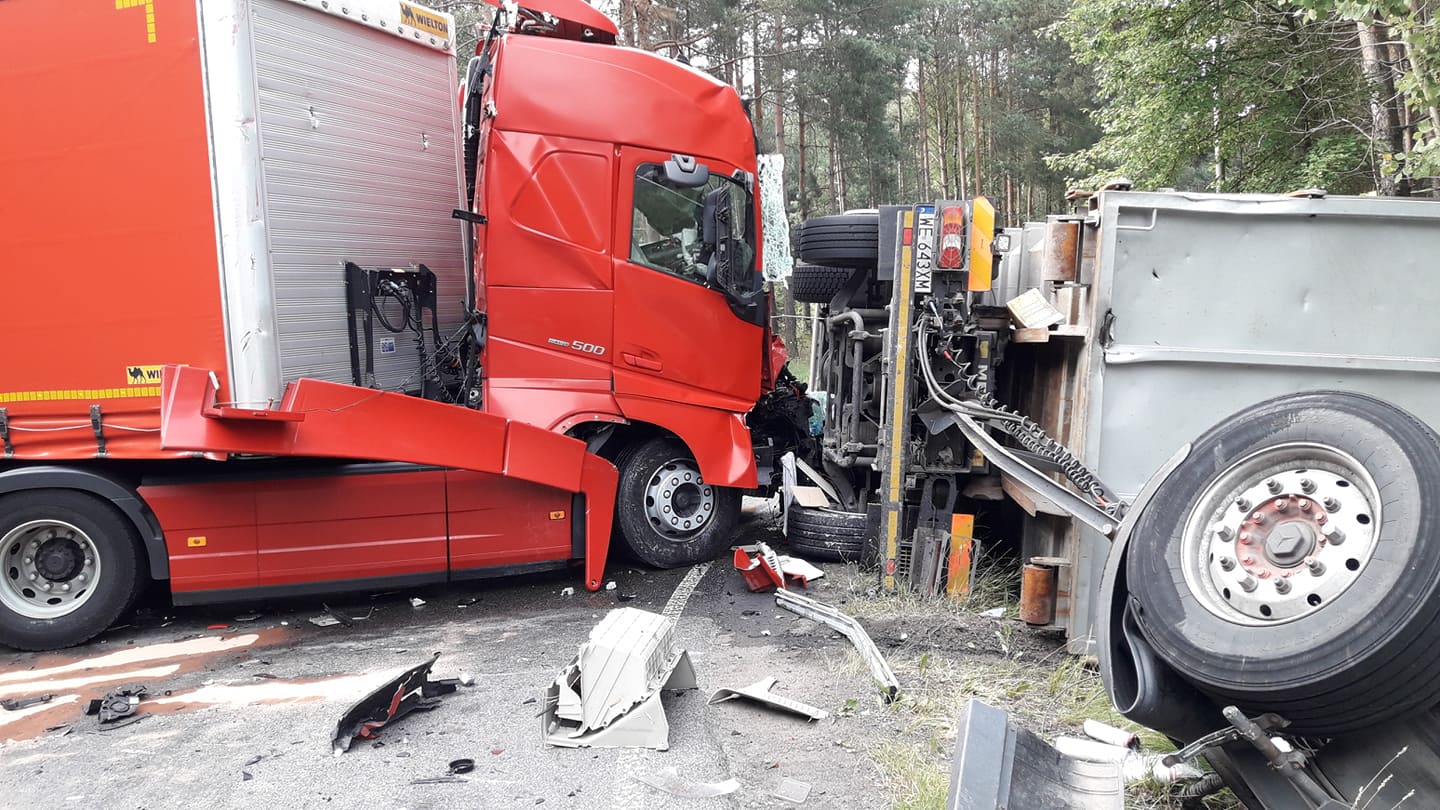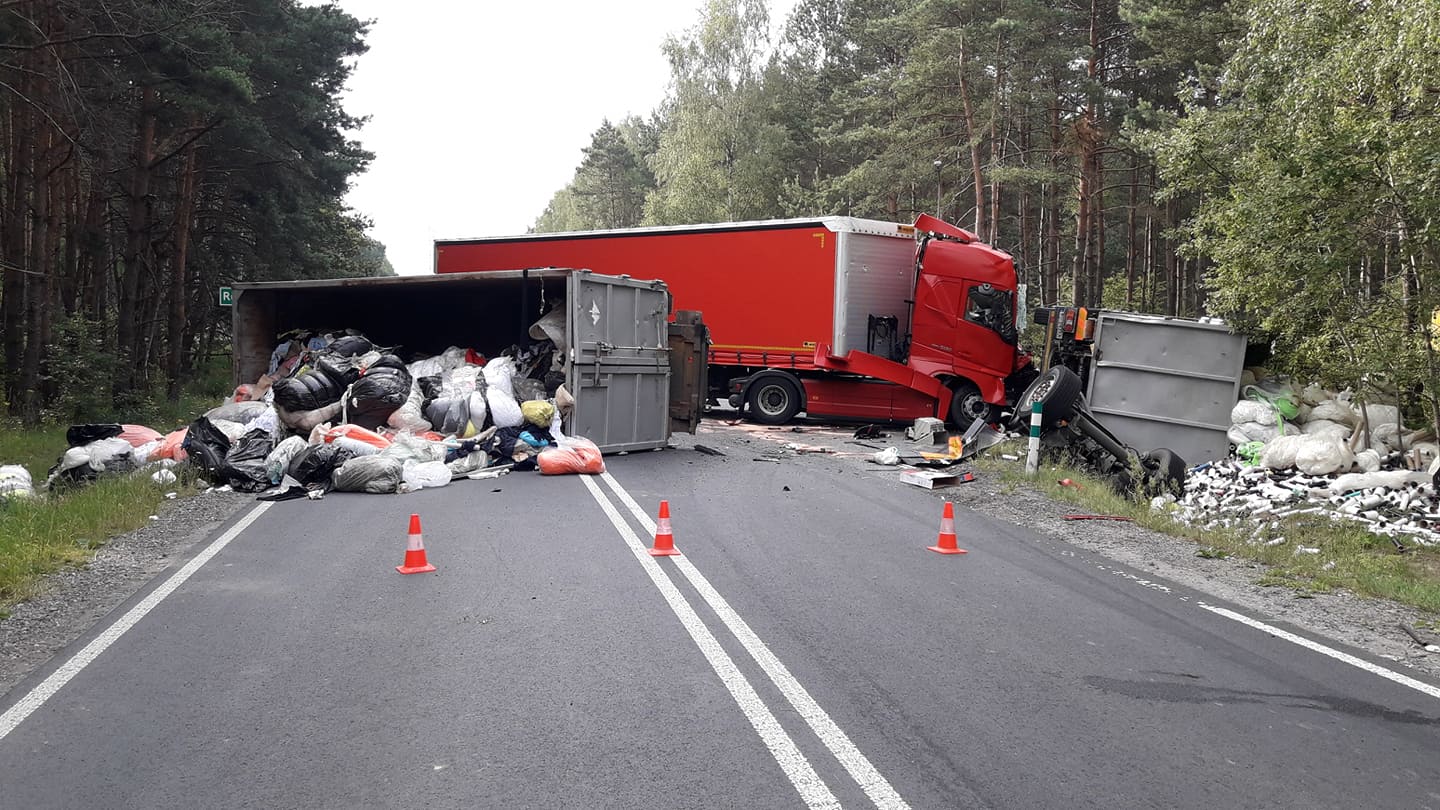 – Kierujący volvem 39-letni mieszkaniec powiatu grodziskiego, nie zachował bezpiecznej odległości od poprzedzającego go ciężarowego mercedesa skręcającego w lewo, i najechał na tył jego naczepy. W efekcie czego ciężarówka wraz z naczepą przewróciły się, a ładunek jaki przewoził pojazd, wysypał się na jezdnię. Kierujący uczestniczący w zdarzeniu byli trzeźwi. Sprawca z obrażeniami ciała został przewieziony do szpitala. Droga od kilku godzin jest zablokowana, a uprzątanie potrwa prawdopodobnie do godzin południowych. – informuje asp. Agnieszka Kropisz z Komendy Powiatowej Policji w Radomsku.