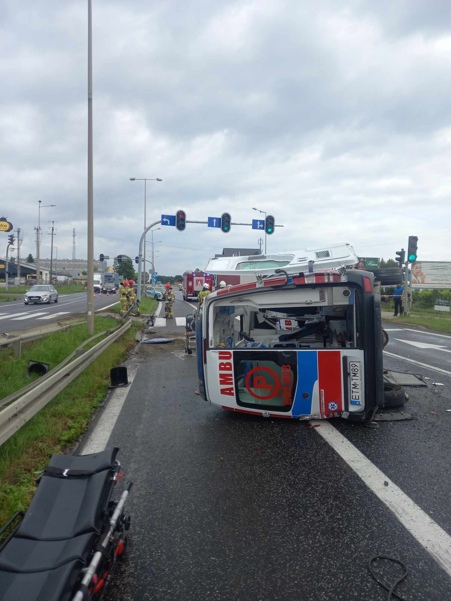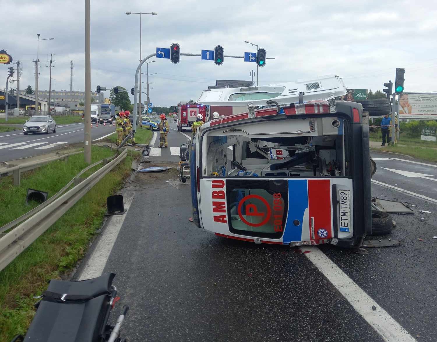 Na jednym ze skrzyżowań w okolicach Tuszyna doszło do poważnej kolizji z udziałem karetki pogotowia i samochodu osobowego. W wyniku zdarzenia, pojazd ratunkowy przewrócił się na dach.