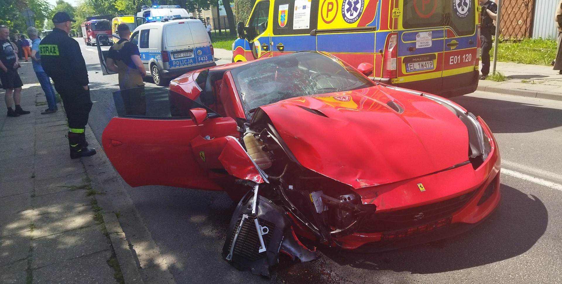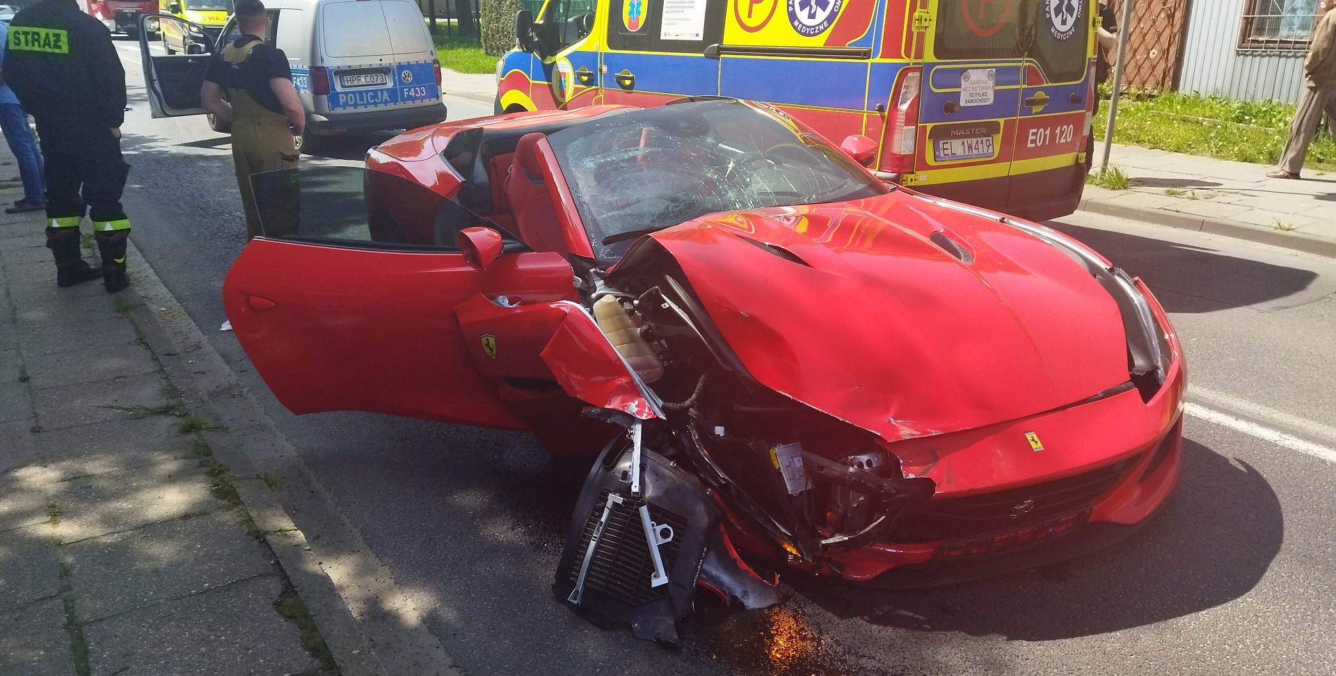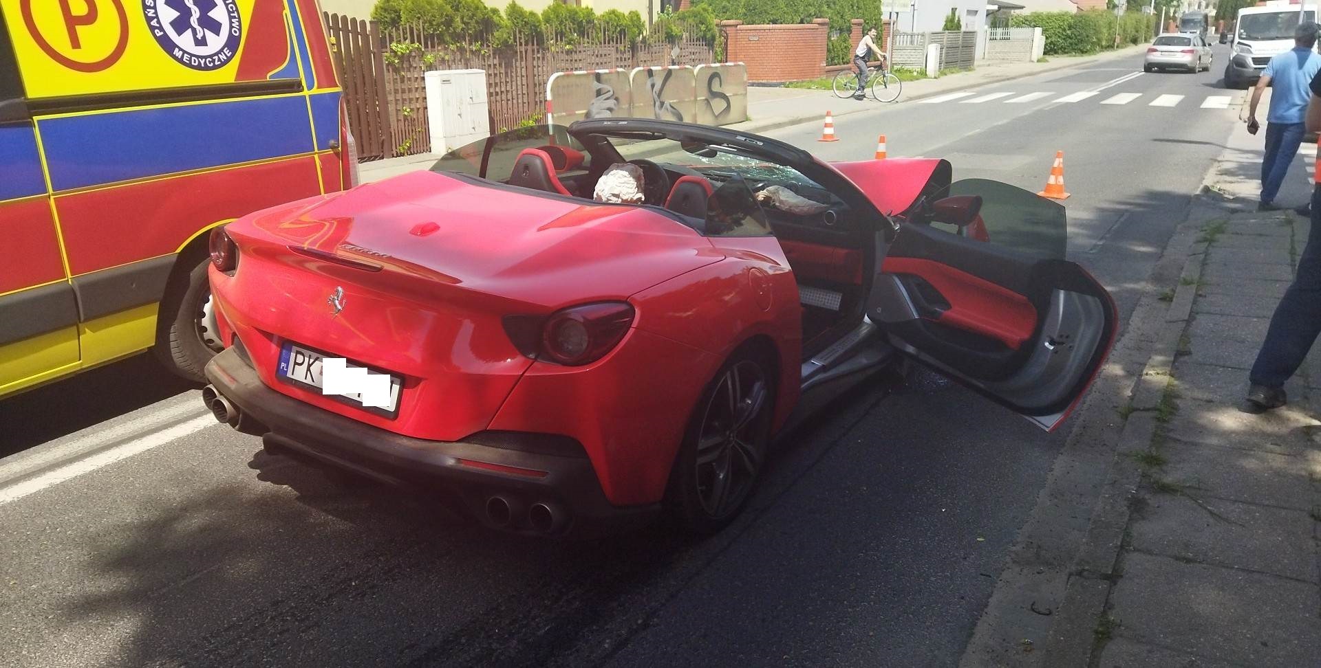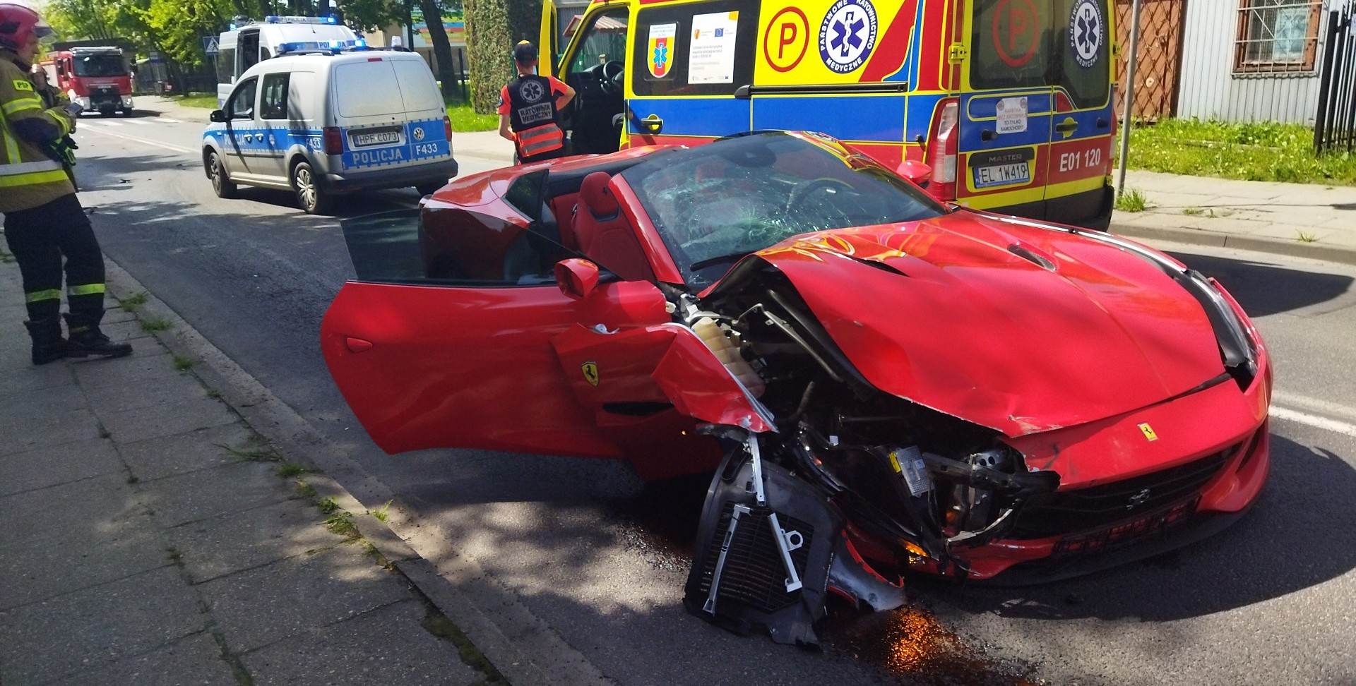 Do kolizji ferrari i mazdy doszło w niedzielę przed godziną 11:00 na ulicy Wyzwolenia w Piotrkowie Trybunalskim. Kierowca jednego z samochodów został lekko ranny, sprawca w policyjny alkotest wydmuchał 0,7 promila.