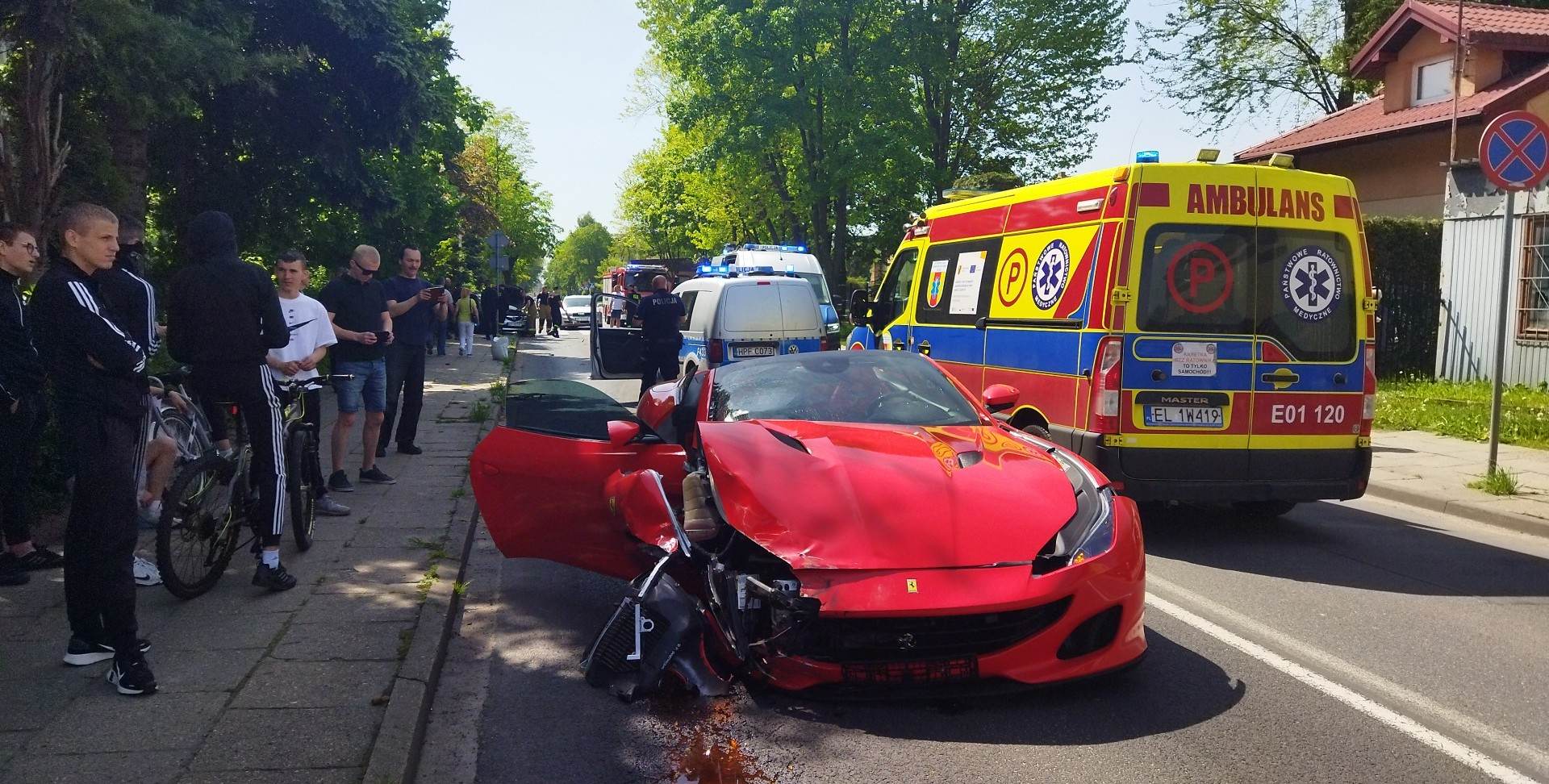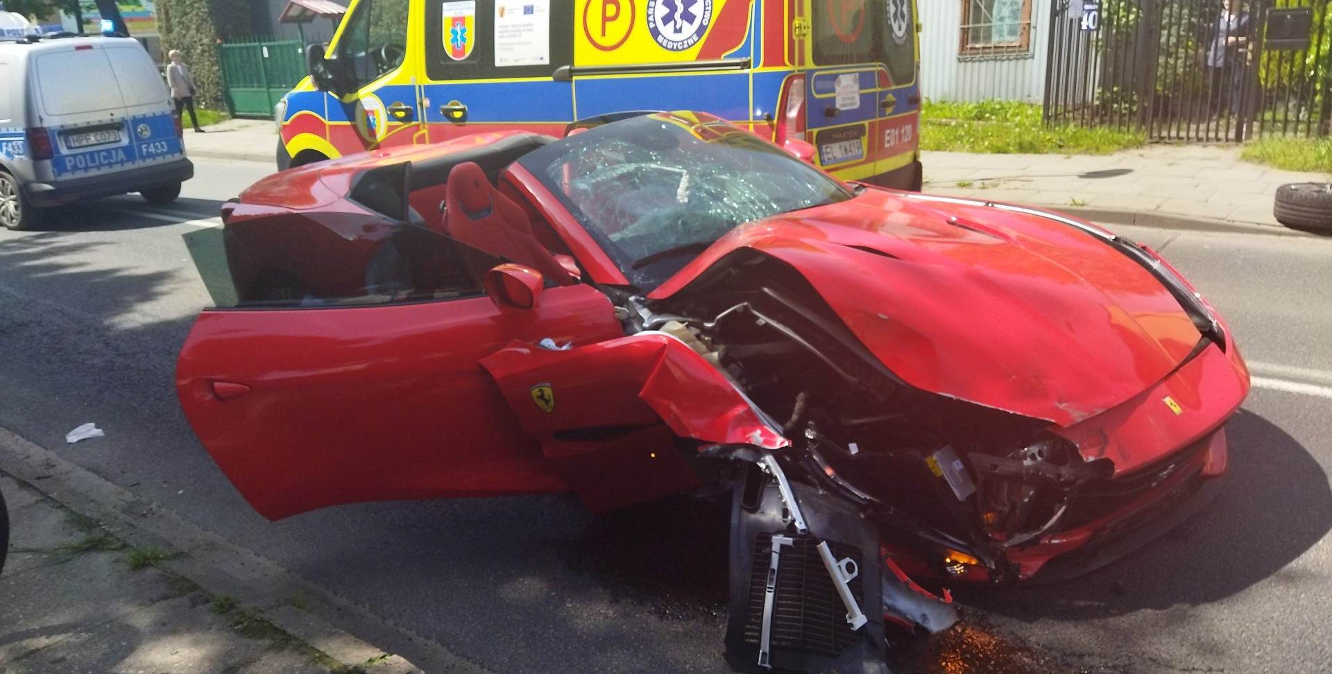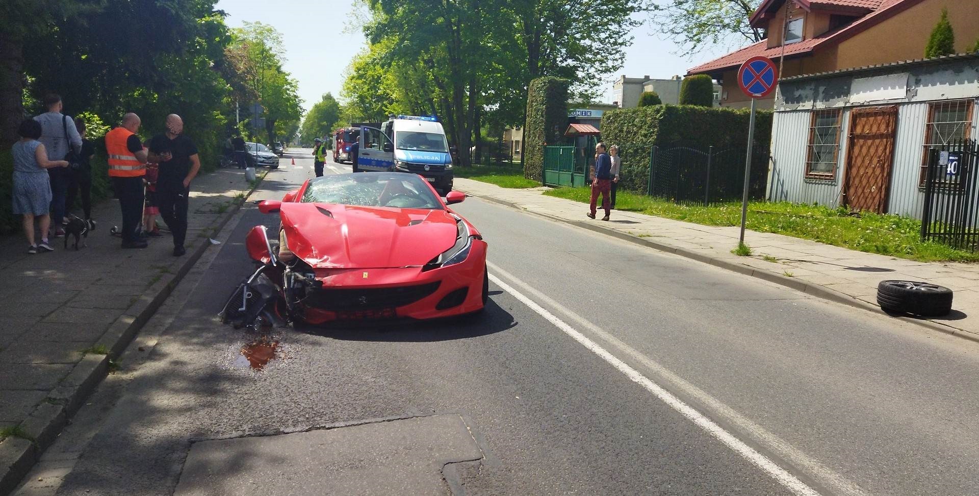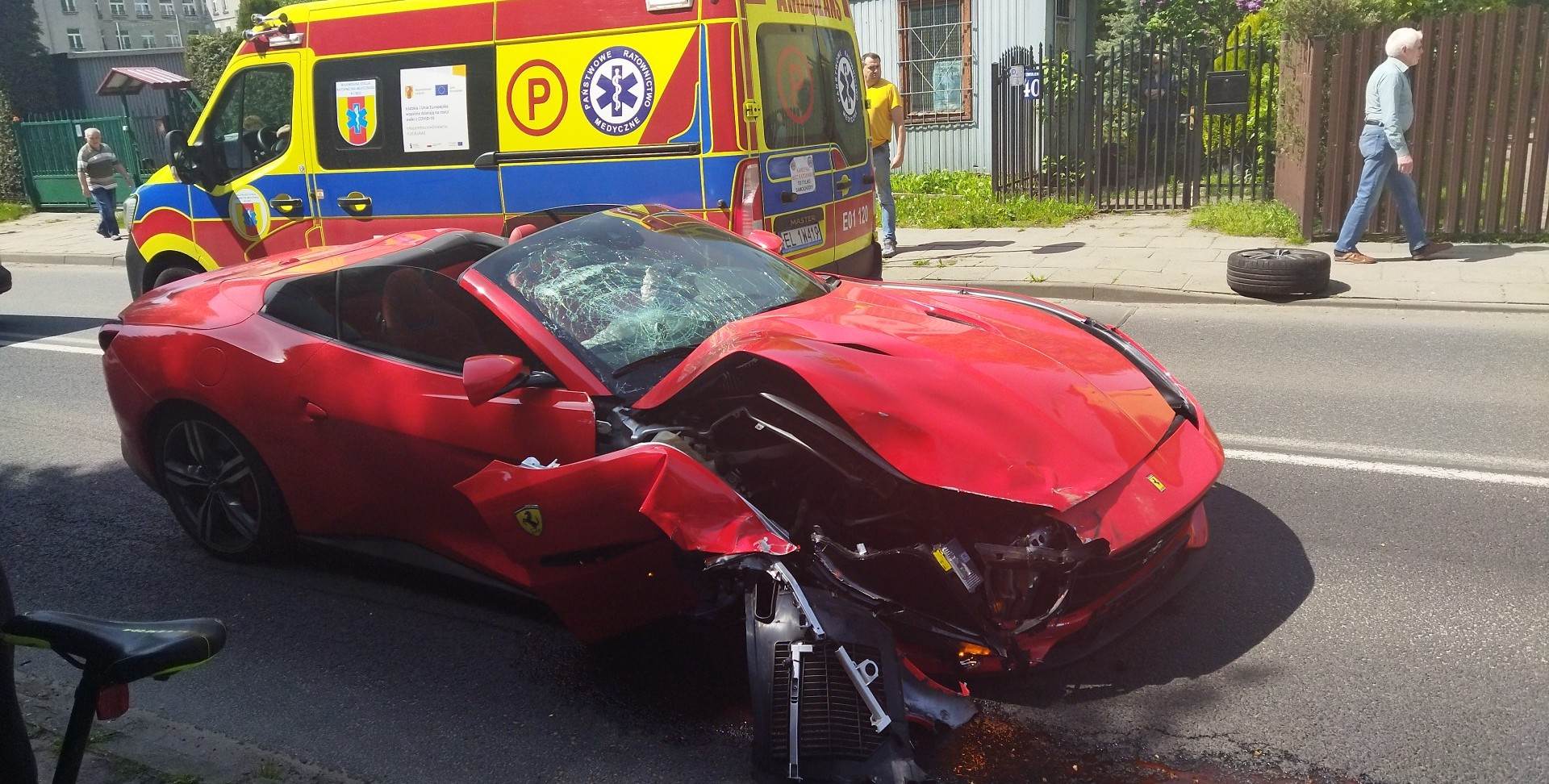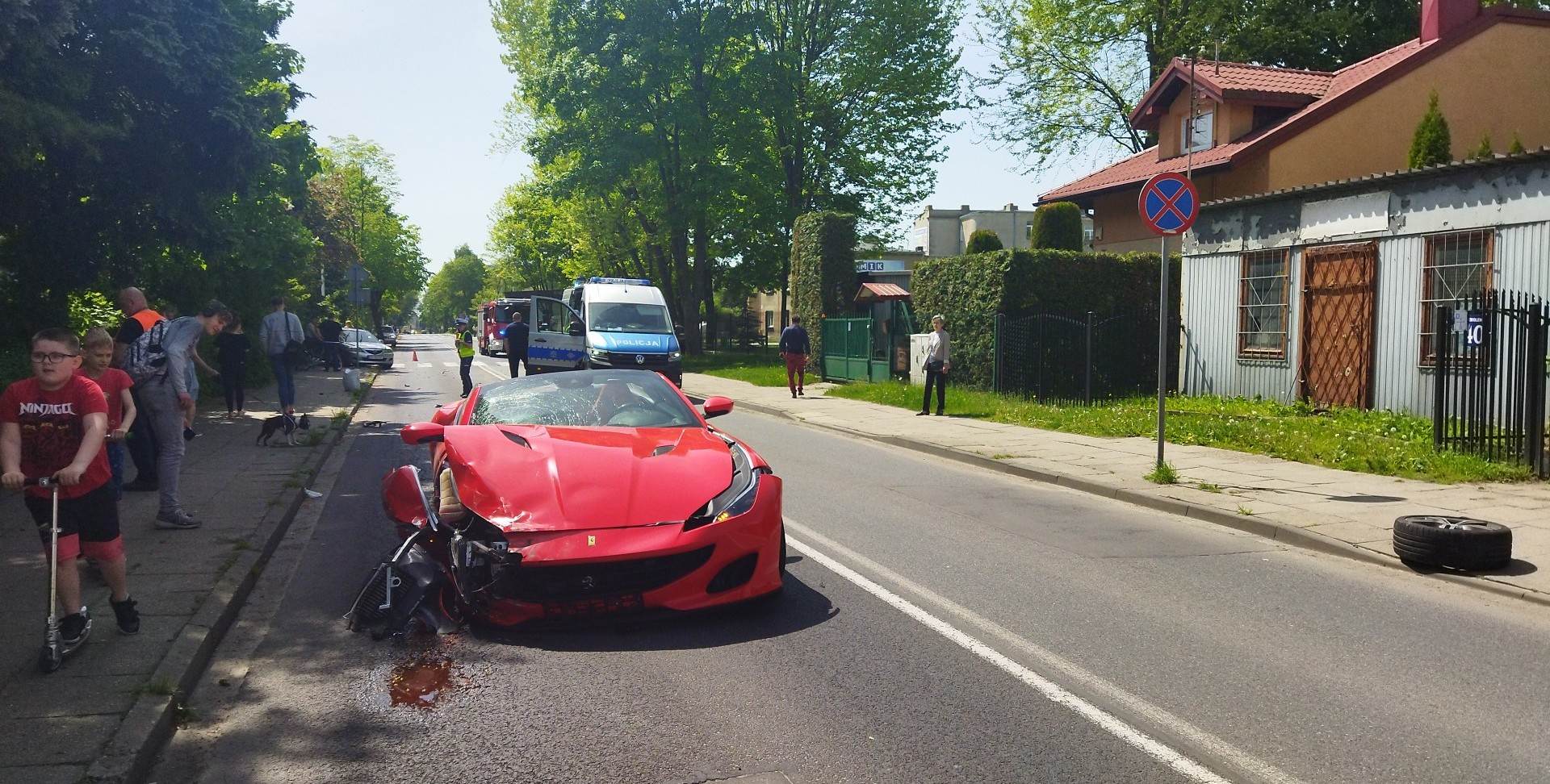 Do kolizji ferrari i mazdy doszło w niedzielę przed godziną 11:00 na ulicy Wyzwolenia w Piotrkowie Trybunalskim. Kierowca jednego z samochodów został lekko ranny, sprawca w policyjny alkotest wydmuchał 0,7 promila.