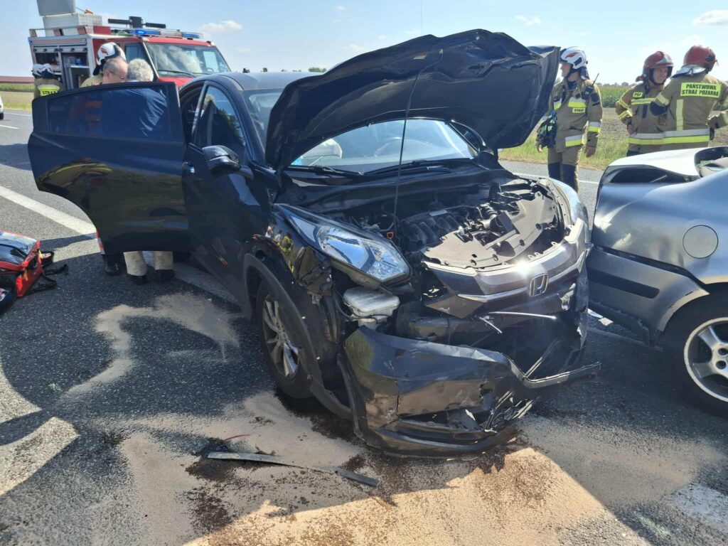 Nieoficjalne informacje mówią, że jedna z osobówek – Hyundai, zatrzymała się za cysterną, za nią zatrzymał się Volkswagen, a wyhamować nie zdołał kierowca Hondy, i uderzył w Passata a ten z Hyundaia. Pomocy medycznej udzielono kierującemu Hondą. Na szczęście nie mu się nie stało. Ruch w tym miejscu utrudniony był przez około półtorej godziny.