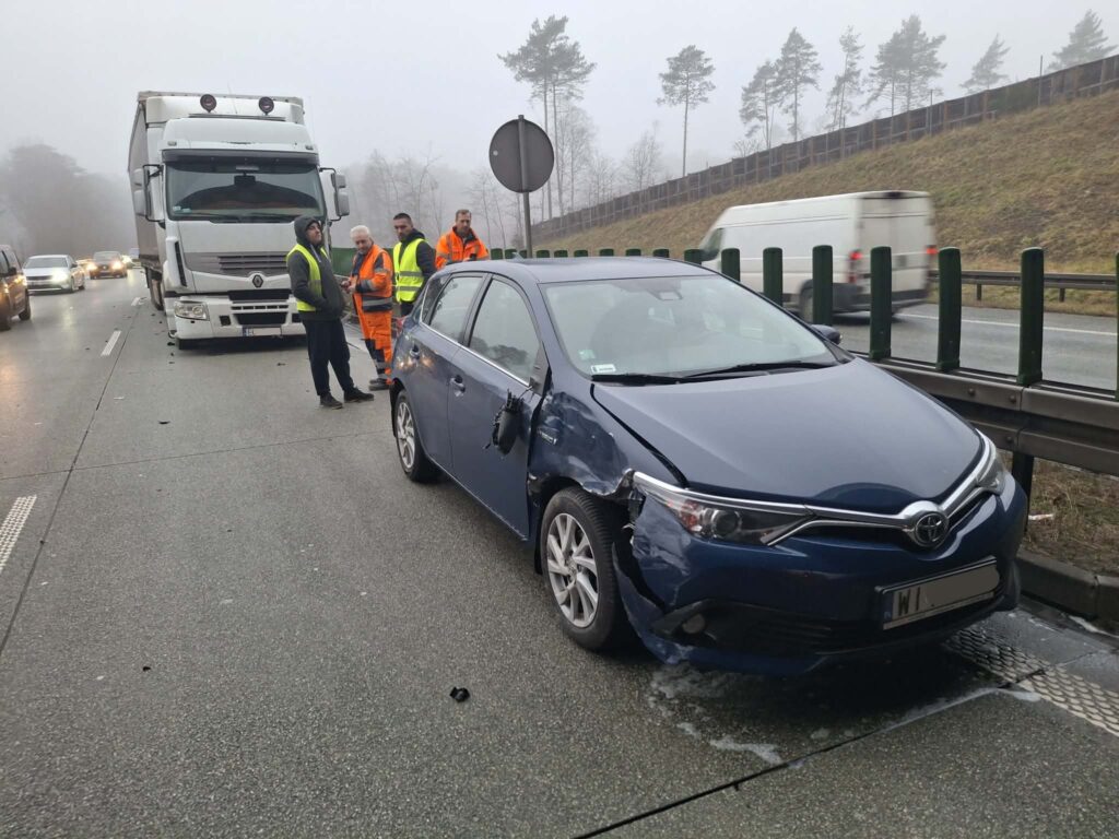 – Około 8:15 na 333 kilometrze drogi S8 w kierunku Warszawy, 52-letni kierujący pojazdem ciężarowym marki Renault, nie ustąpił pierwszeństwa podczas zmiany pasa ruchu, doprowadzając do zderzenia z pojazdem osobowym marki Toyota. Kierujący byli trzeźwi. Lewy pas w kierunku Warszawy jest zablokowany – relacjonuje mł. asp. Edyta Daroch z KMP w Piotrkowie.