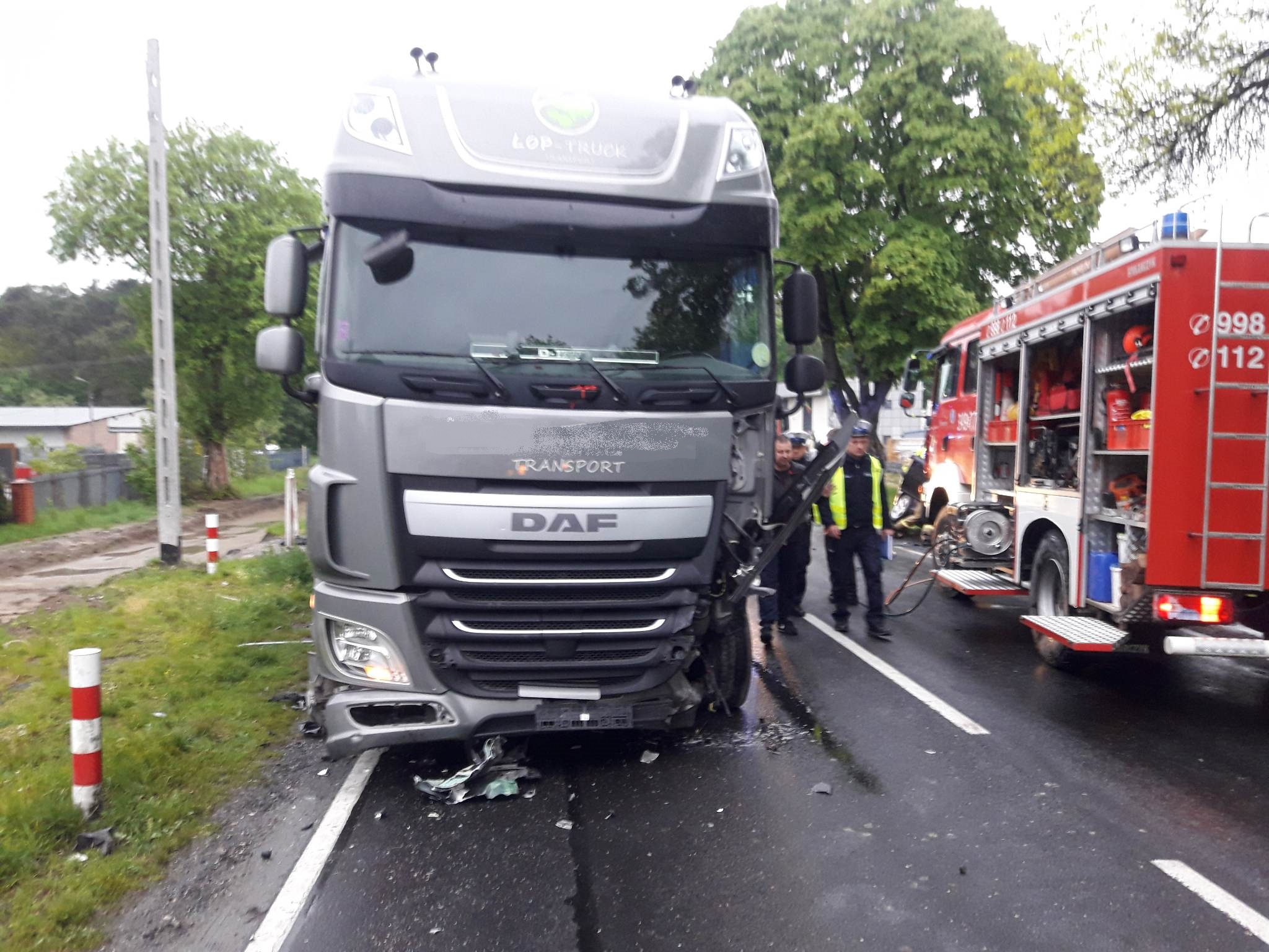 Przed godziną 20-tą doszło do zdarzenia drogowego z udziałem pojazdu ciężarowego oraz osobowego. Ze wstępnych ustaleń policjantów będących na miejscu wynika, że kierujący audi jadąc w kierunku Piotrkowa, w wyniku nieprawidłowej obserwacji drogi, zjechał na przeciwległy pas ruchu i doprowadził do zderzenia z prawidłowo jadącym pojazdem ciężarowym marki daf – mówi mówi asp. sztab. Izabela Gajewska rzeczniczka piotrkowskiej policji. – W wyniku poniesionych obrażeń kierowca osobówki został przewieziony do szpitala w Piotrkowie. Obaj uczestnicy byli trzeźwi. Na miejscu policjanci wykonują wszystkie czynności by ustalić dokładny przebieg zdarzenia. Utrudnienia w tym miejscu mogą potrwać do około 21:30. Samochody osobowe kierowane są objazdem przez miejscowość Koło – dodaje.