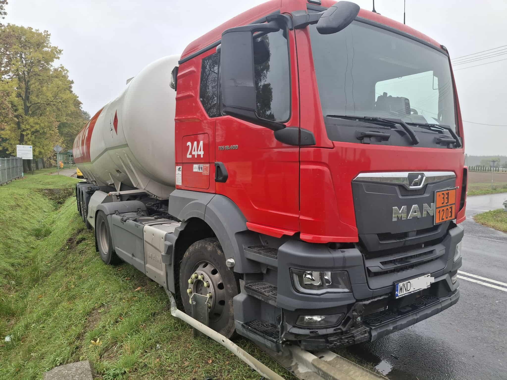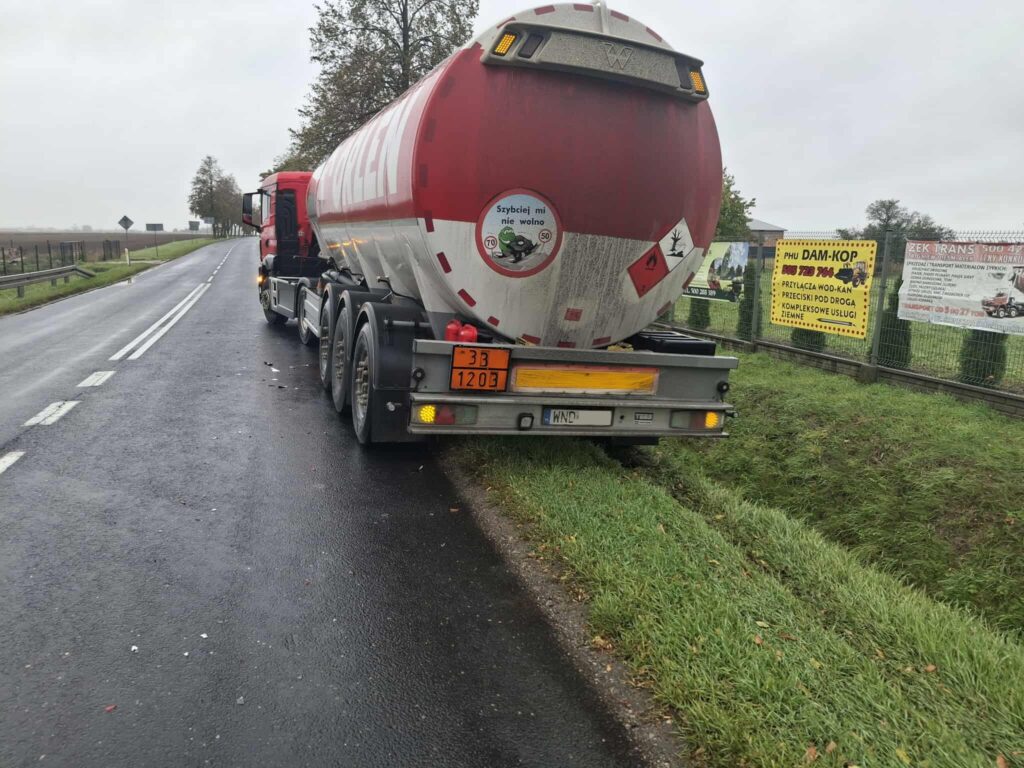 Według naszych informacji, natychmiastowa reakcja kierowcy ciężarówki zapobiegła znacznie poważniejszym konsekwencjom. Aby nie rozjechać samochodu osobowego, kierowca cysterny podjął próbę odbicia w prawo, kierując pojazd częściowo w stronę pobocza i rowu.