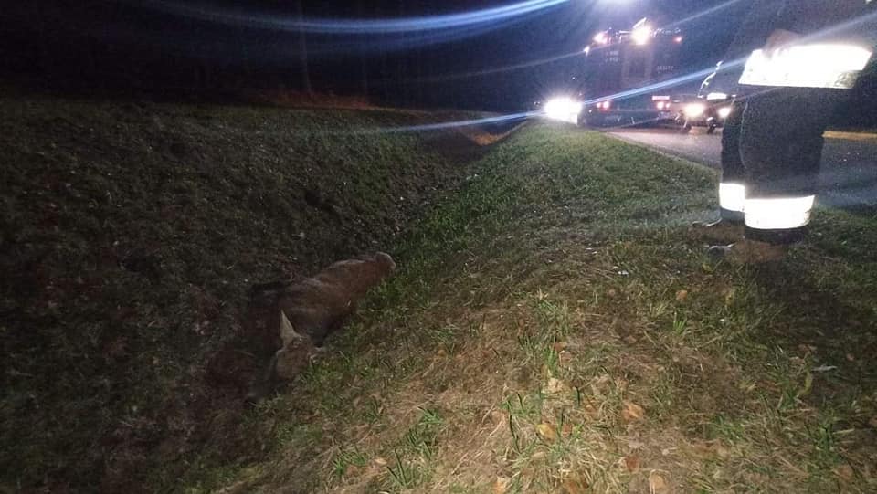 Do zderzenia jelenie z samochodem osobowym doszło w niedzielę (31.10) na DW724 pomiędzy miejscowościami Włodzimierzów i Łęczno. Strażacy o wypadku zostali powiadomieni tuż przed godziną 18. Na miejsce udali się druhowie z OSP Przygłów.