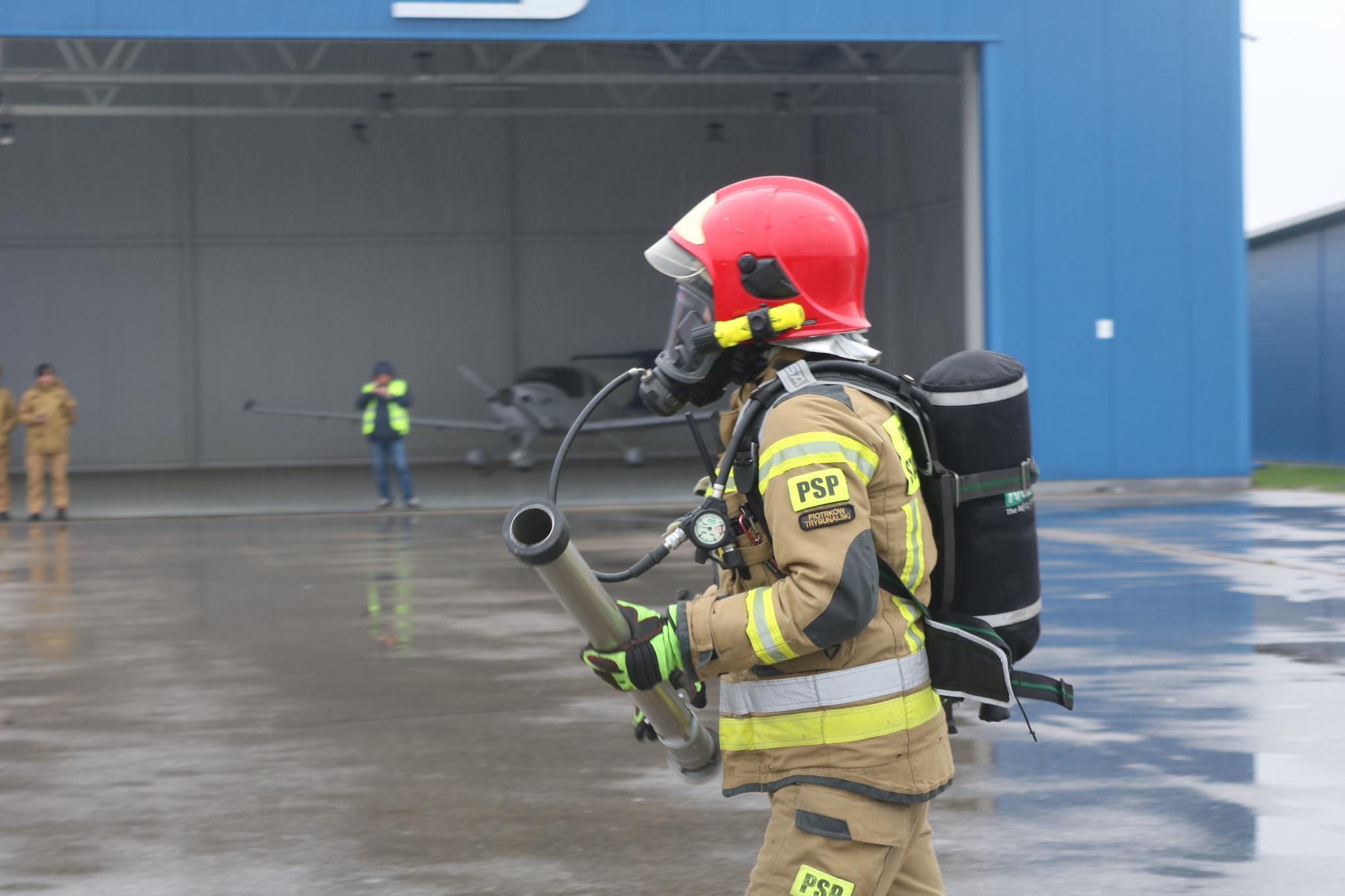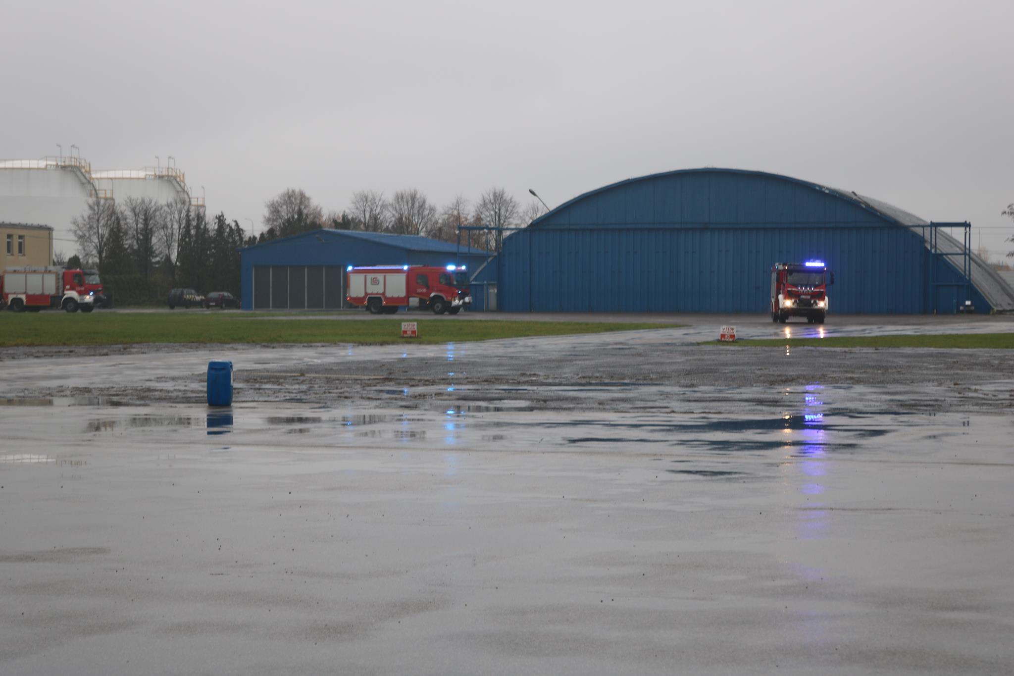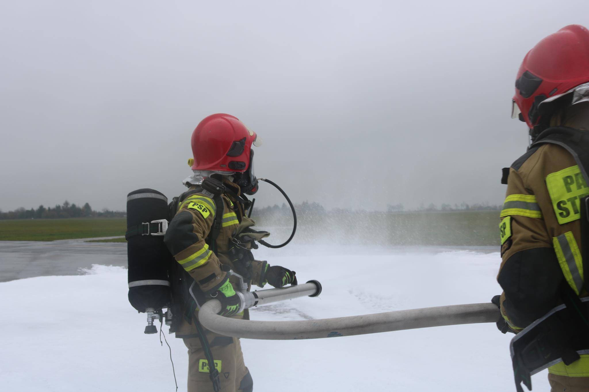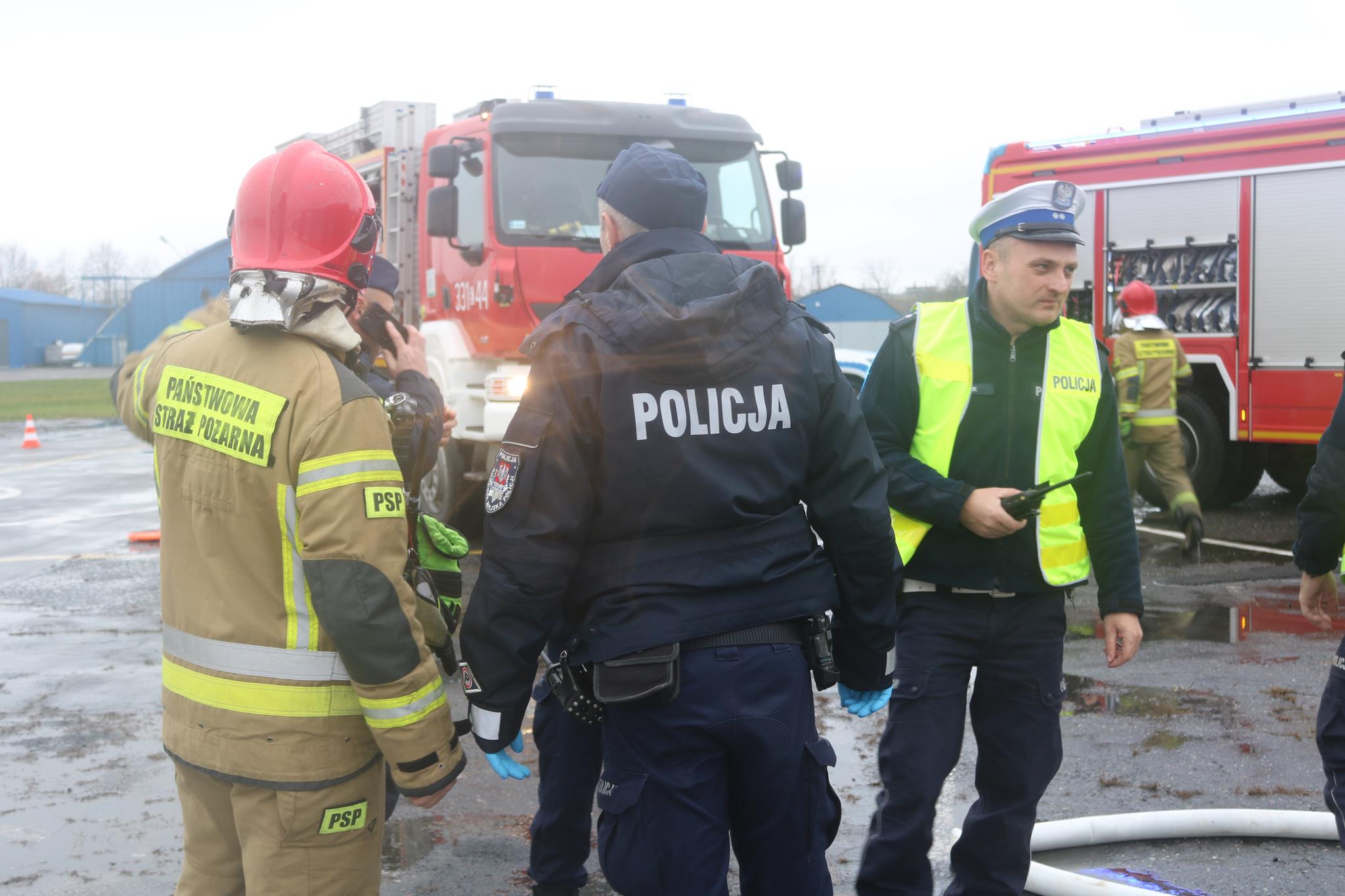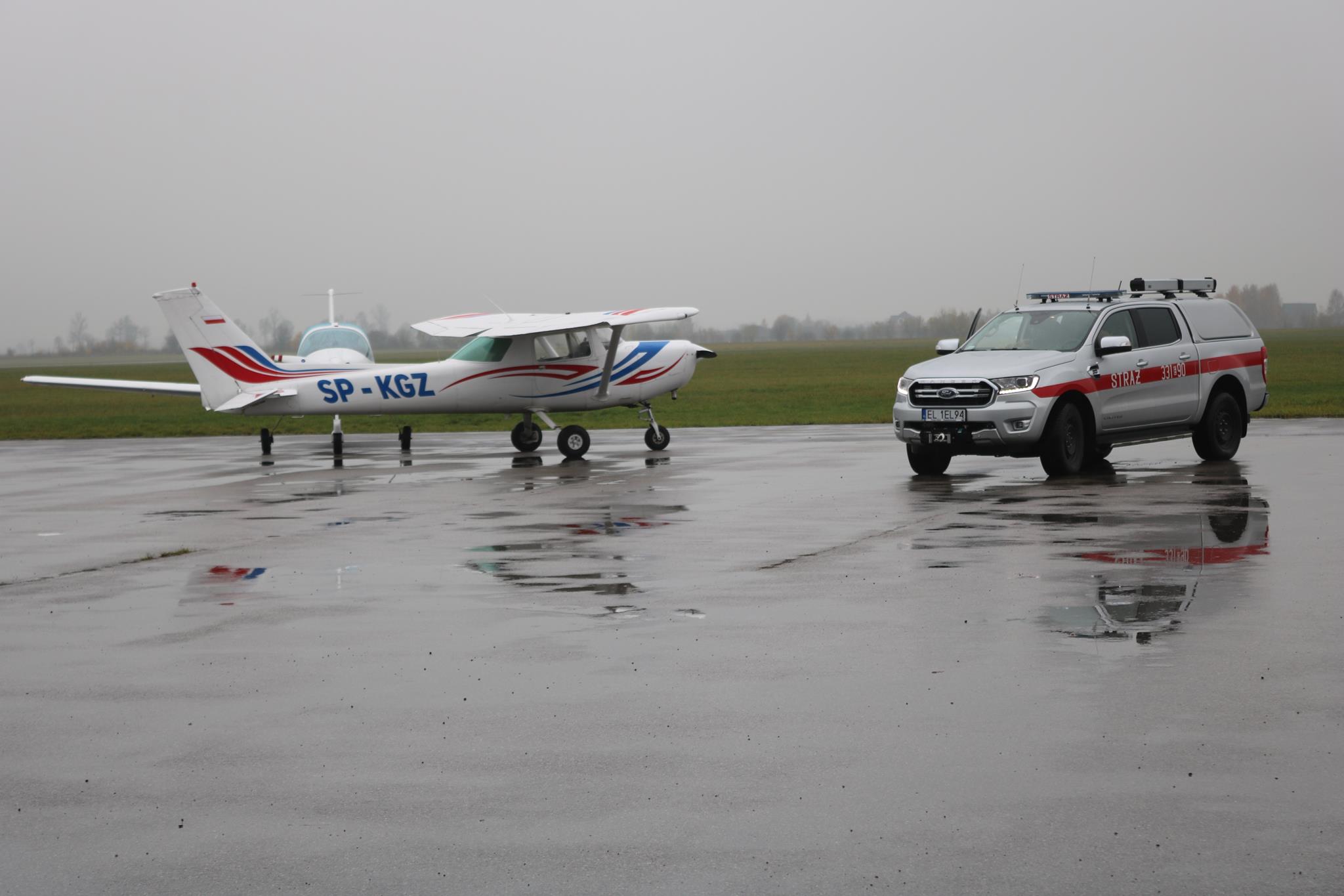 Mały samolot z jedną osobą na pokładzie kołuje do progu pasa, w tym samym czasie do lotniska zbliża się kolejna awionetka z dwiema osobami na pokładzie, która z powodu awarii silnika i niskiej wysokości, musi wykonać awaryjne lądowanie. Samolot nie zdołał dolecieć do pasa i uderza w kołujący drugi statek powietrzny. Oba samoloty z osobami na pokładzie ulegają uszkodzeniu, a znajdujący się w nich piloci odnieśli różnego typu obrażenia – to scenariusz dzisiejszych ćwiczeń, które odbywały się na lotnisku w Piotrkowie.