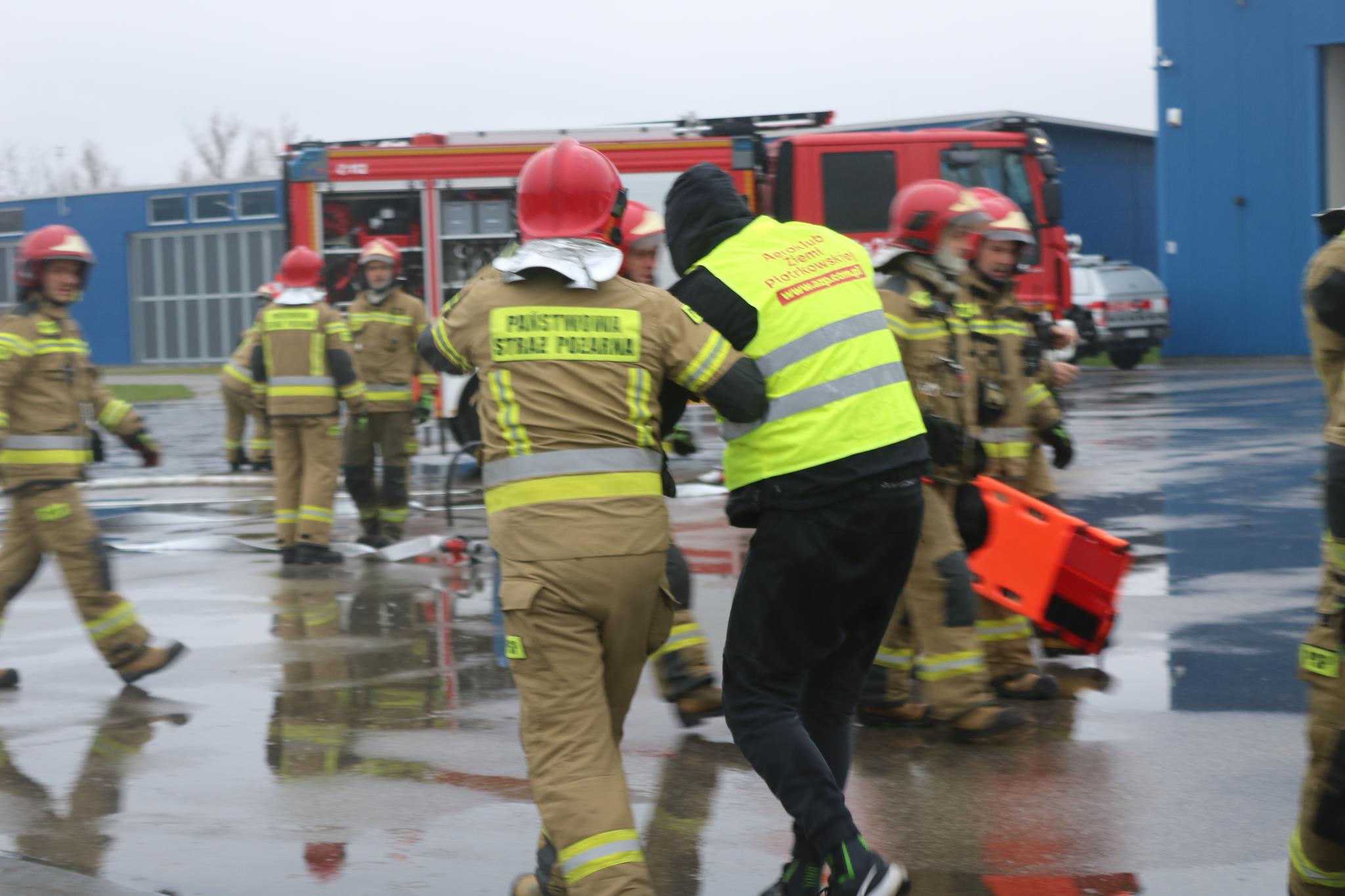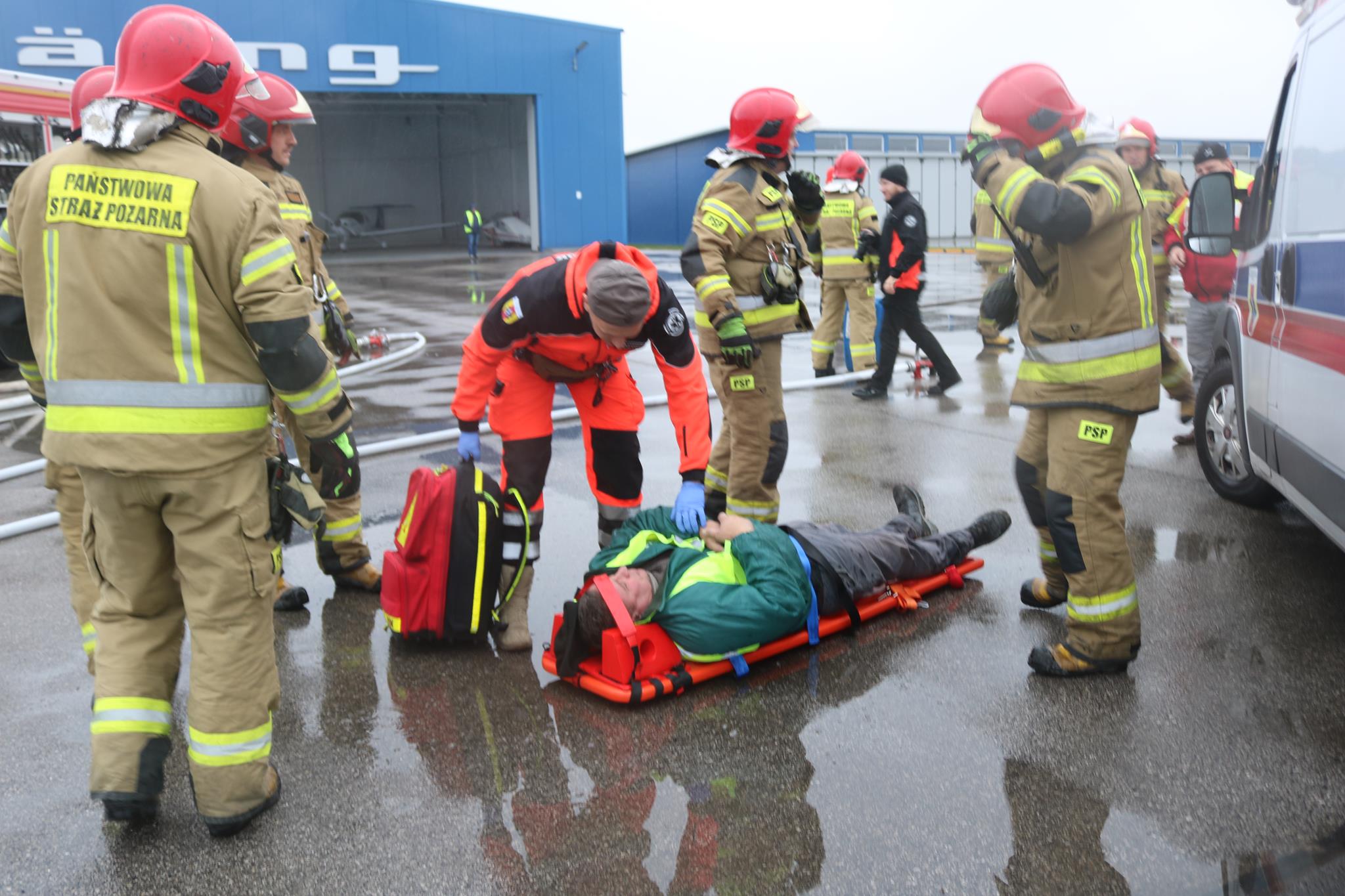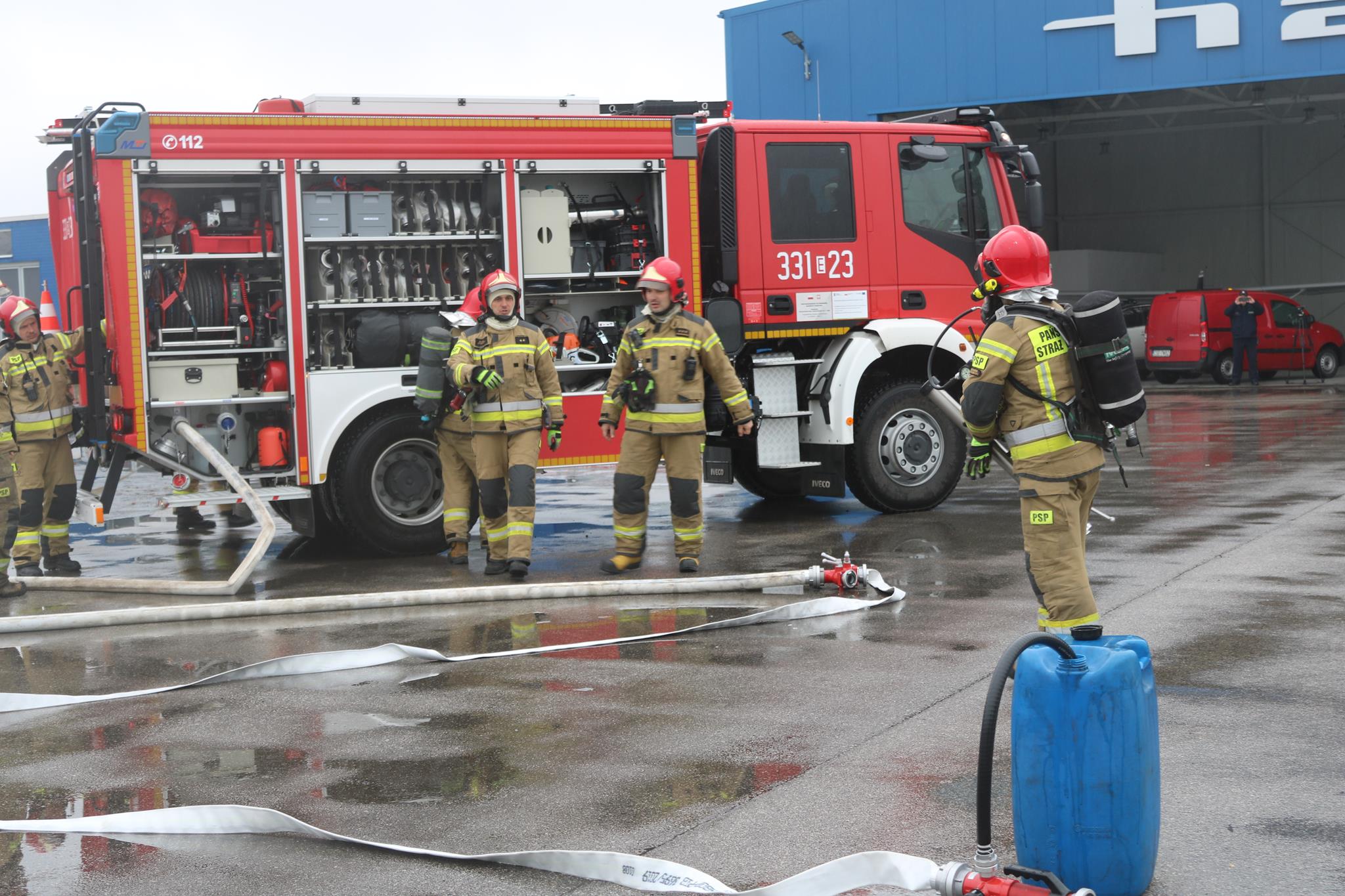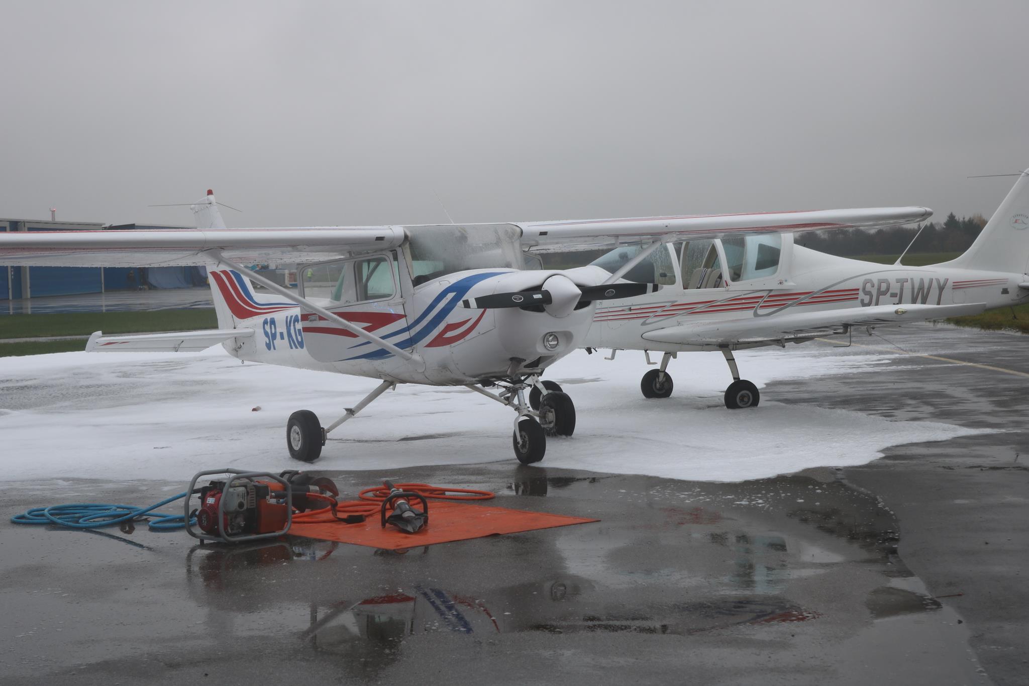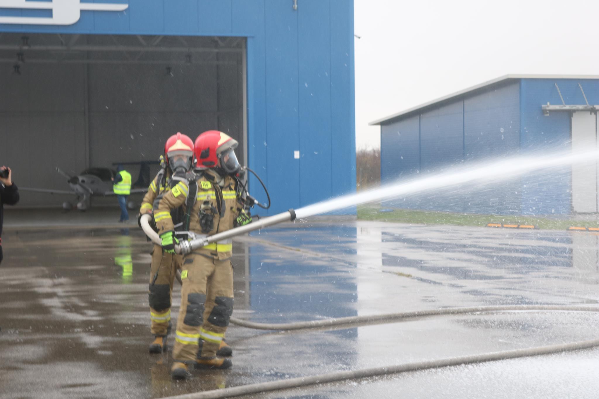 Mały samolot z jedną osobą na pokładzie kołuje do progu pasa, w tym samym czasie do lotniska zbliża się kolejna awionetka z dwiema osobami na pokładzie, która z powodu awarii silnika i niskiej wysokości, musi wykonać awaryjne lądowanie. Samolot nie zdołał dolecieć do pasa i uderza w kołujący drugi statek powietrzny. Oba samoloty z osobami na pokładzie ulegają uszkodzeniu, a znajdujący się w nich piloci odnieśli różnego typu obrażenia – to scenariusz dzisiejszych ćwiczeń, które odbywały się na lotnisku w Piotrkowie.