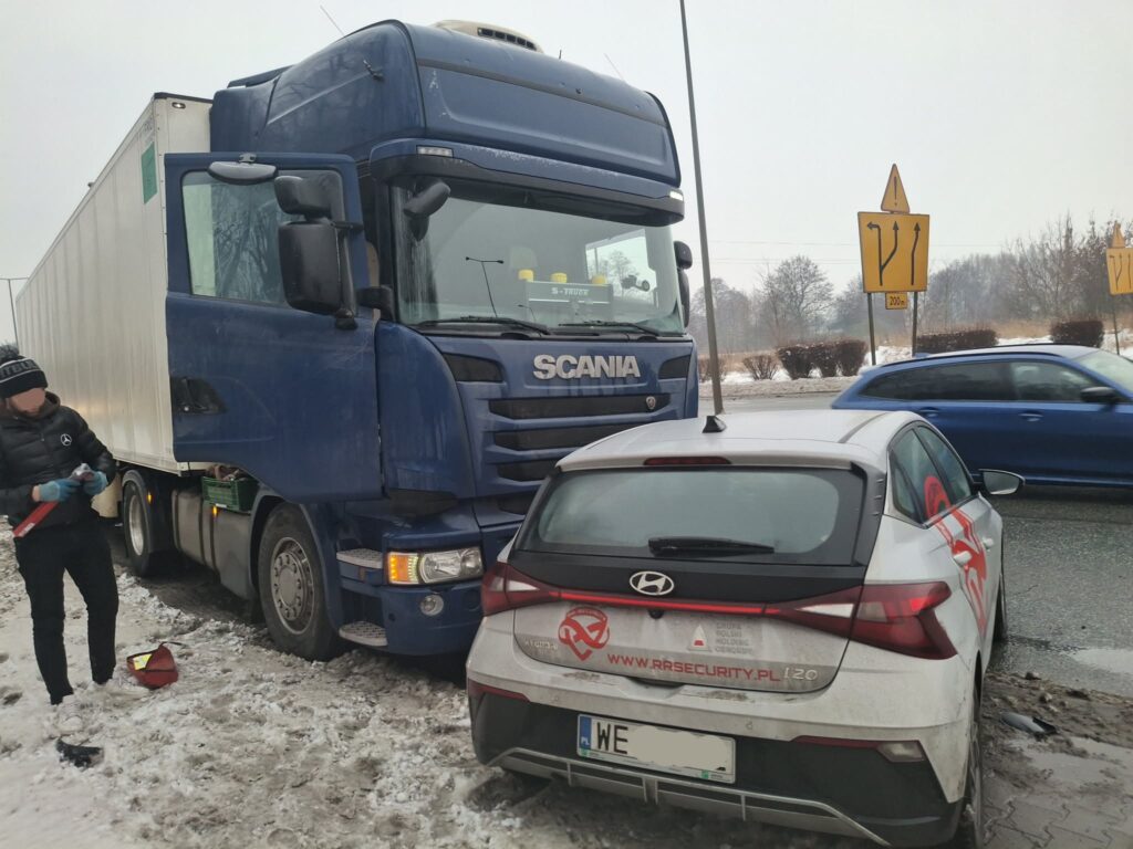 Do zderzenie ciężarowej Scanii i Hyundaia doszło w środę (14 stycznia) na ulicy Sulejowskiej w Piotrkowie. Ruch w kierunku ronda bugaj była utrudniony. Na szczęście nikt w tym zdarzeniu nie ucierpiał. Kierujący ciężarówką prawdopodobnie nie zauważył osobówki podczas zmiany pasa.