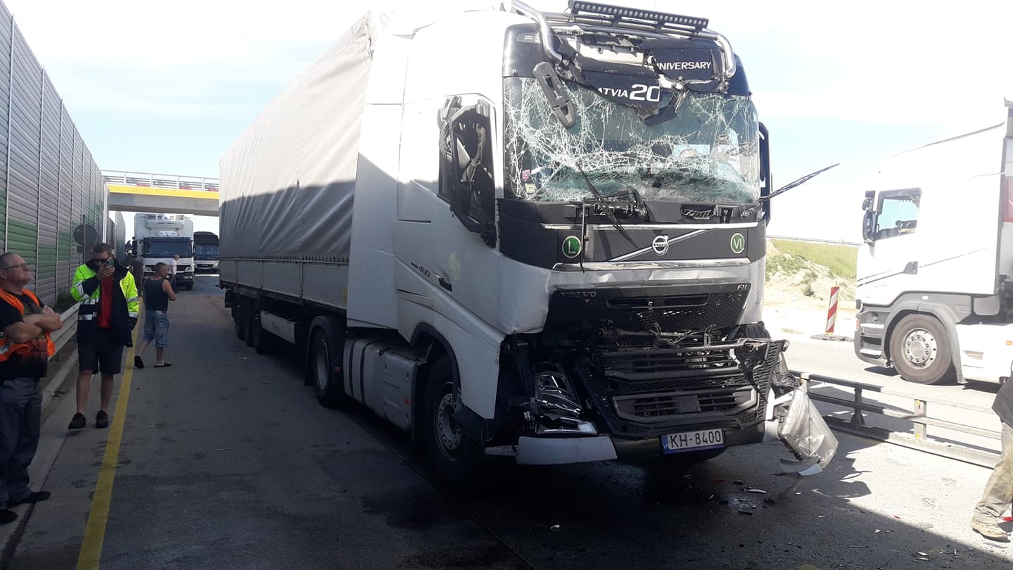 Trzy ciężarówki zderzyły się na autostradzie A1 na wysokości Parzniewic w gminie Wola Krzysztoporska. Jeden z kierowców jest pijany.