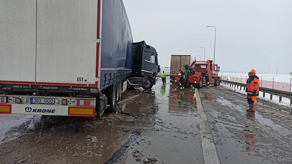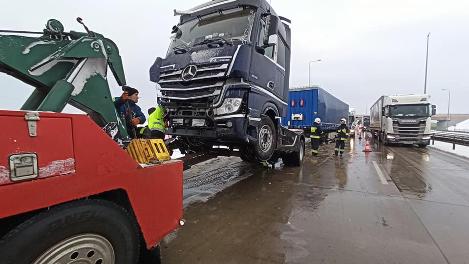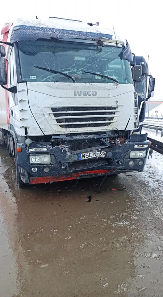 Trzy ciężarówki zderzyły się w sobotnie południe na trasie S8 na wysokości Polichna. Do usunięcia pojazdów trzeba było wezwać specjalistyczny ciężki sprzęt, dlatego droga w kierunku Warszawy zablokowana była przez ponad 3 godziny. Policja dla samochodów osobowych wyznaczyła objazd drogą serwisową, ciężarówki musiały stać w korku.