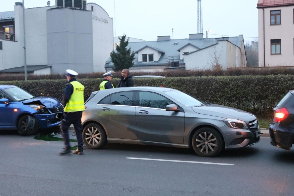 W kolizji wzięły udział trzy samochody – bmw, mercedes i suzuki. Ze wstępnych ustaleń wynika, że kierujący suzuki uderzył w tył poprzedzającego do mercedesa, a ten wjechał w tył jadące tym pasem bmw.