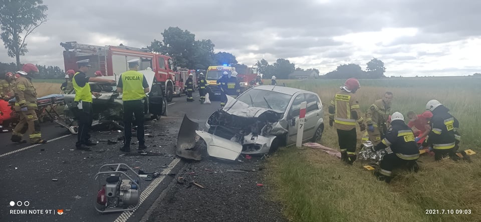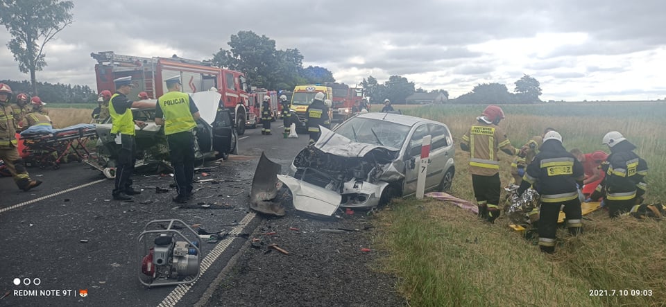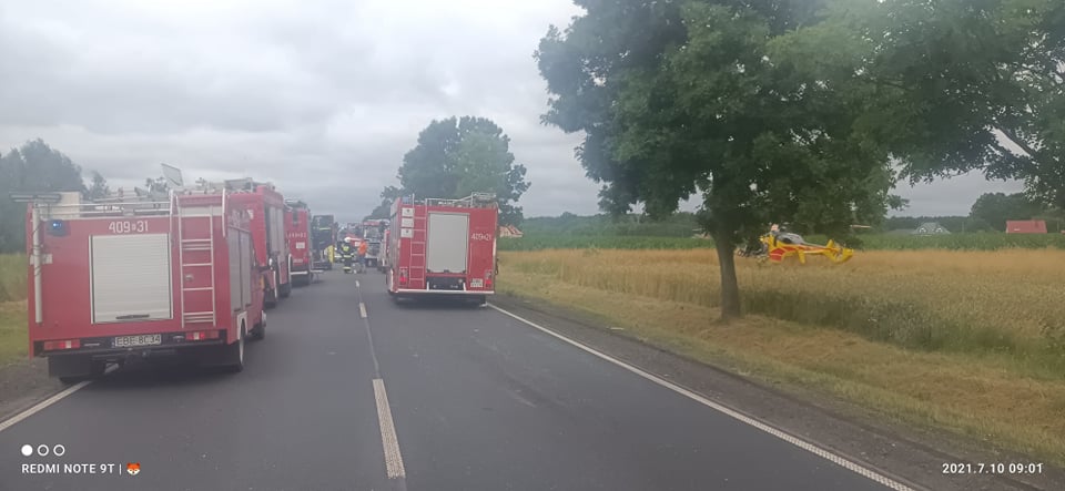 Policjanci ustalają przyczyny wypadku z udziałem trzech samochodów osobowych. Do zderzenia doszło w sobotę rano na DK74 pomiędzy Piotrkowem a Bełchatowem w okolicach miejscowości Wola Kruszyńska i Wielopole w powiecie bełchatowskim. W wypadku brały udział trzy pojazdy: seat ibiza którym podróżowała jedna osoba, lexus w którym znajdowały się dwie osoby a także ford fiesta, którym jechała jedna osoba. Wszystkie osoby zostały ranne i przetransportowane je do szpitali. Na miejscu oprócz strażaków i policji, były karetki pogotowia a także dwa śmigłowce LPR. Stan poszkodowanych osób nie jest znany.