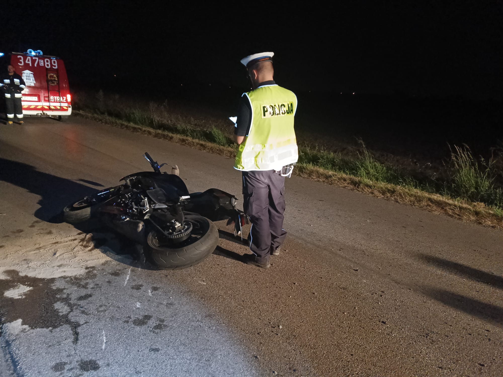 Ze wstępnych ustaleń wynika, że kierujący jednośladem jadąc od strony Oprzężowa w stronę Woli Krzysztoporskiej, przewożąc swoją 12-letnią córkę, nie zachował należytej ostrożności i potrącił przebiegająca przez drogę sarnę. Niestety zwierzę nie przeżyło wypadku z motocyklem. Do szpitala trafił ojciec i nastoletnia córka. Kierujący pojazdem był trzeźwy.