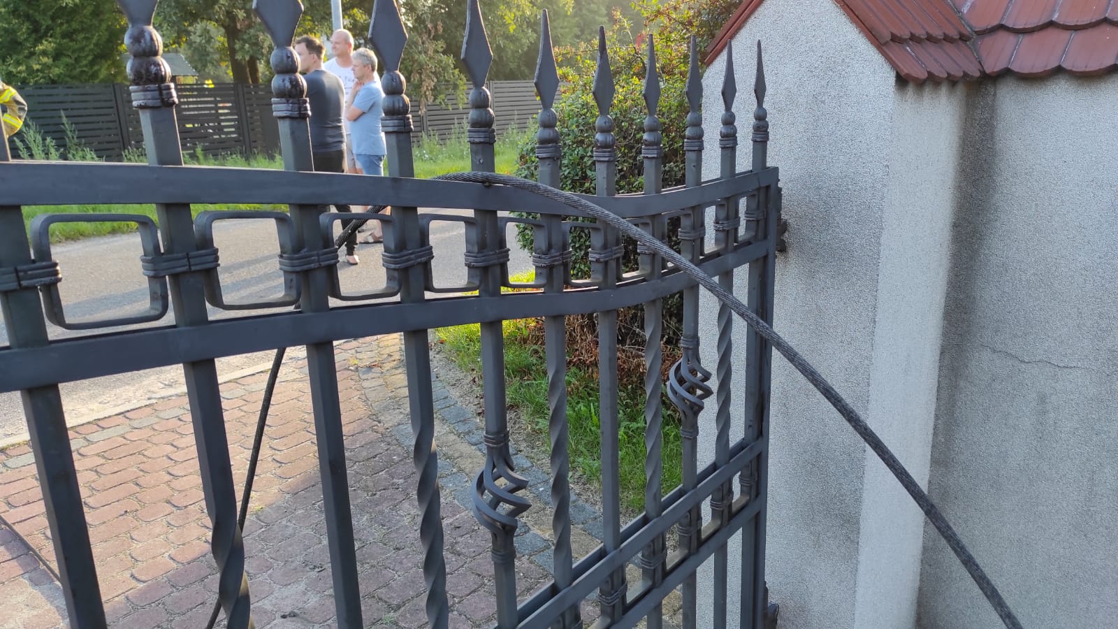 Do zdarzenia doszło po godzinie 6:00. Zerwany przewód leżał na kilku posesjach, a także w poprzek ulicy. – Był taki błysk jakby ktoś podłączył sporą spawarkę. Widać, że jak to spadło na metalowe ogrodzenie, to spaliło druty zbrojeniowe w betonowym słupku. Świadczyć o tym może osmolona część słupka. Dzwoniliśmy na policję, to nam powiedzieli, że nie są elektrykami i żeby dzwonić na pogotowie energetyczne, a tam? automat: „wybierz 1, wybierz 0”. Strażacy na miejscu byli błyskawicznie, za to energetykom zajęło sporo czasu nim dojechali – mówi jeden z mieszkańców.