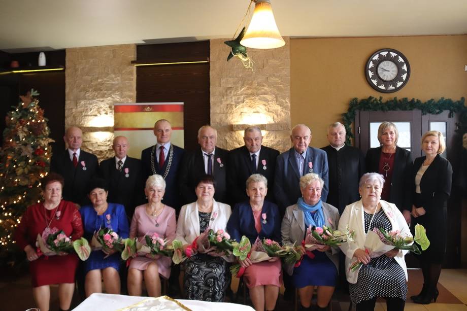 Medale za Długoletnie Pożycie Małżeńskie, przyznane przez Prezydenta Rzeczypospolitej Polskiej wręczył wójt Alojzy Włodarczyk. – Prawdziwe, zgodne i dobre małżeństwo to takie, które przetrwa wszystkie życiowe problemy i bolączki by po latach zyskać wzajemne zrozumienie, tolerancję oraz wzajemny szacunek. Złote Gody to niezwykłe wydarzenie nie tylko dla Jubilatów, ale również dla ich rodzin oraz przyjaciół, to 50 lat nieprzerwanego, harmonijnego pożycia małżeńskiego – mówił wójt. – Wszystkim parom, które zostały odznaczone, serdecznie gratuluję i życzę dużo zdrowia i miłości na kolejne, wspólne lata – dodał Alojzy Włodarczyk.