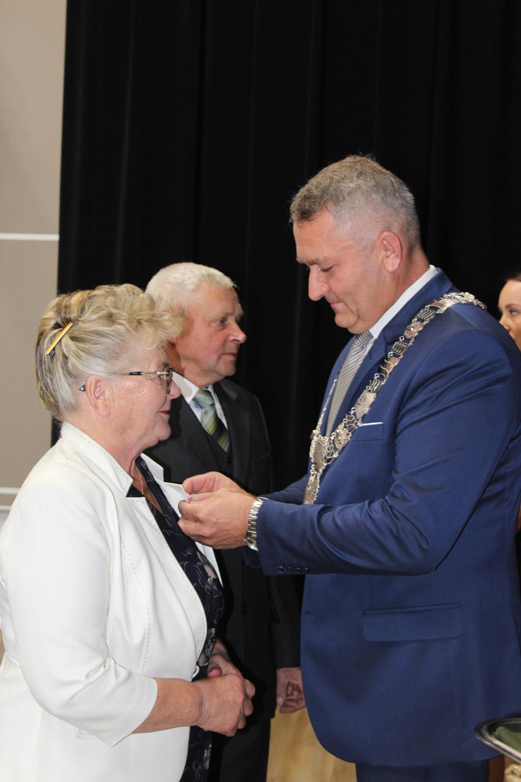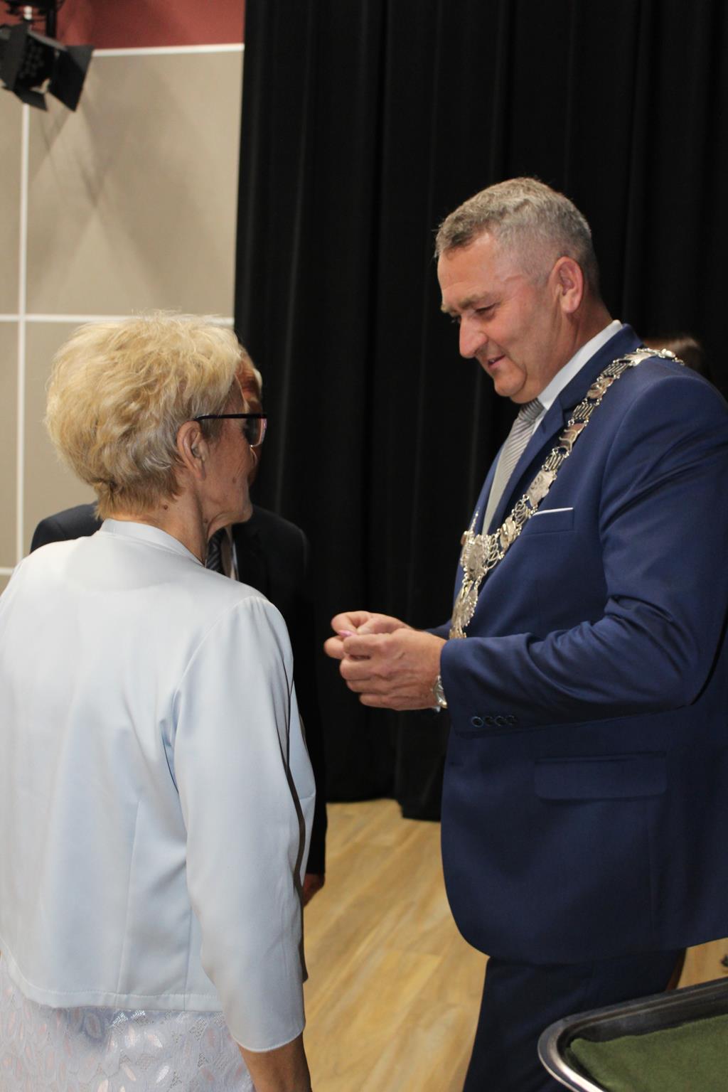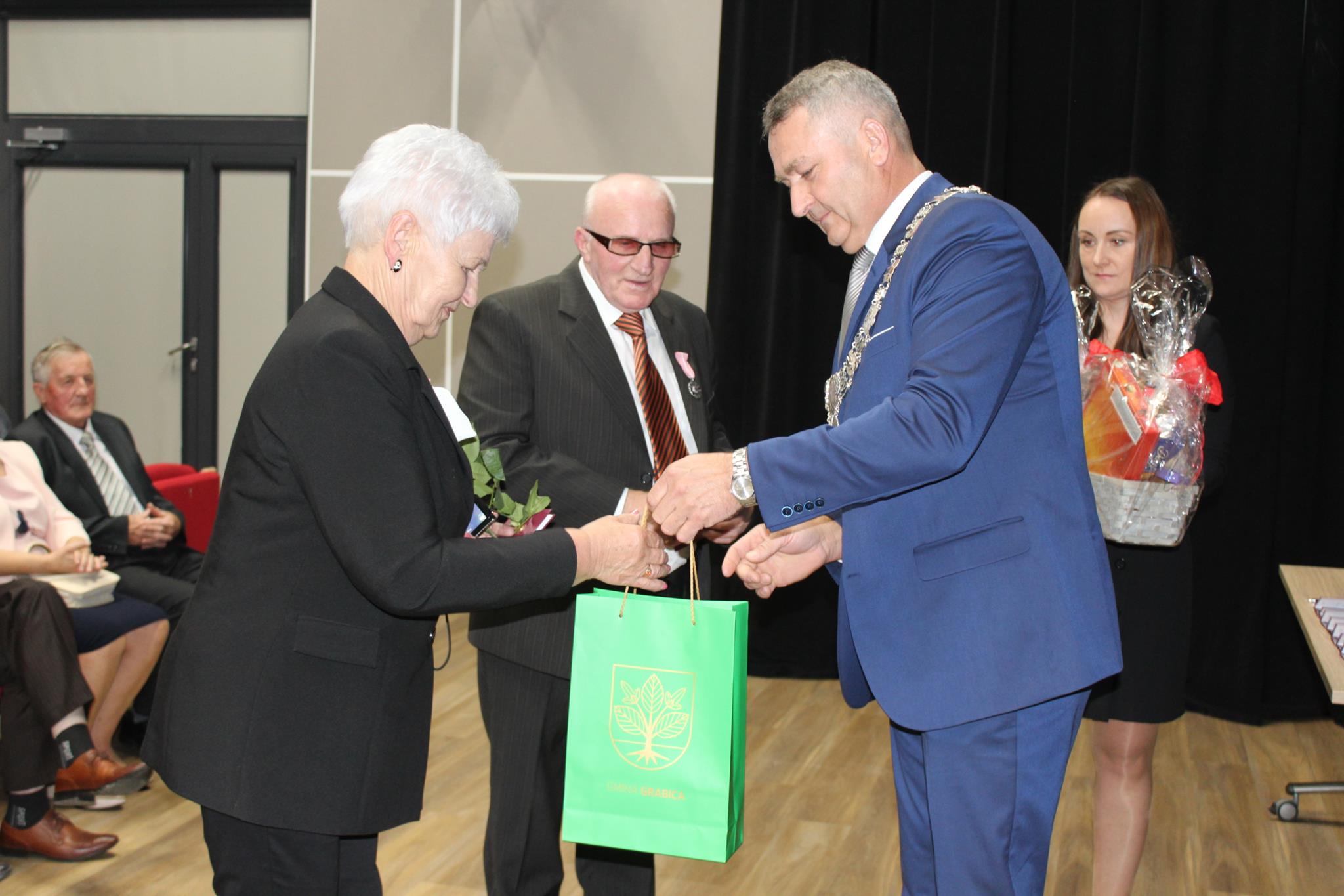 Oprócz medali, wójt Krzysztof Kuliński wręczył jubilatom pamiątkowe dyplomy i upominki. Składając przy okazji gratulacje i życzenia. – Jest to wyjątkowe świadectwo dla młodych pokoleń oraz wzór do naśladowania, jak iść przez życie, przezwyciężając trudności i wspólnie się nim cieszyć. Nie wystarczy pokochać, trzeba jeszcze umieć wziąć tę miłość w ręce i przenieść ją przez całe życie – mówił wójt.