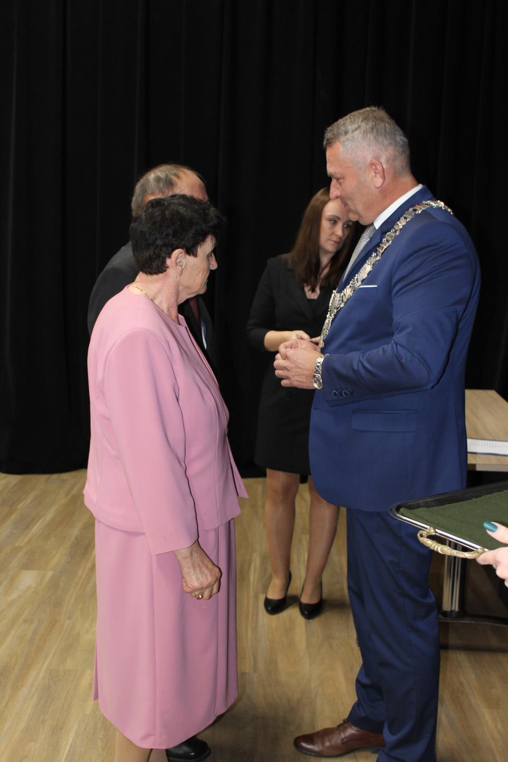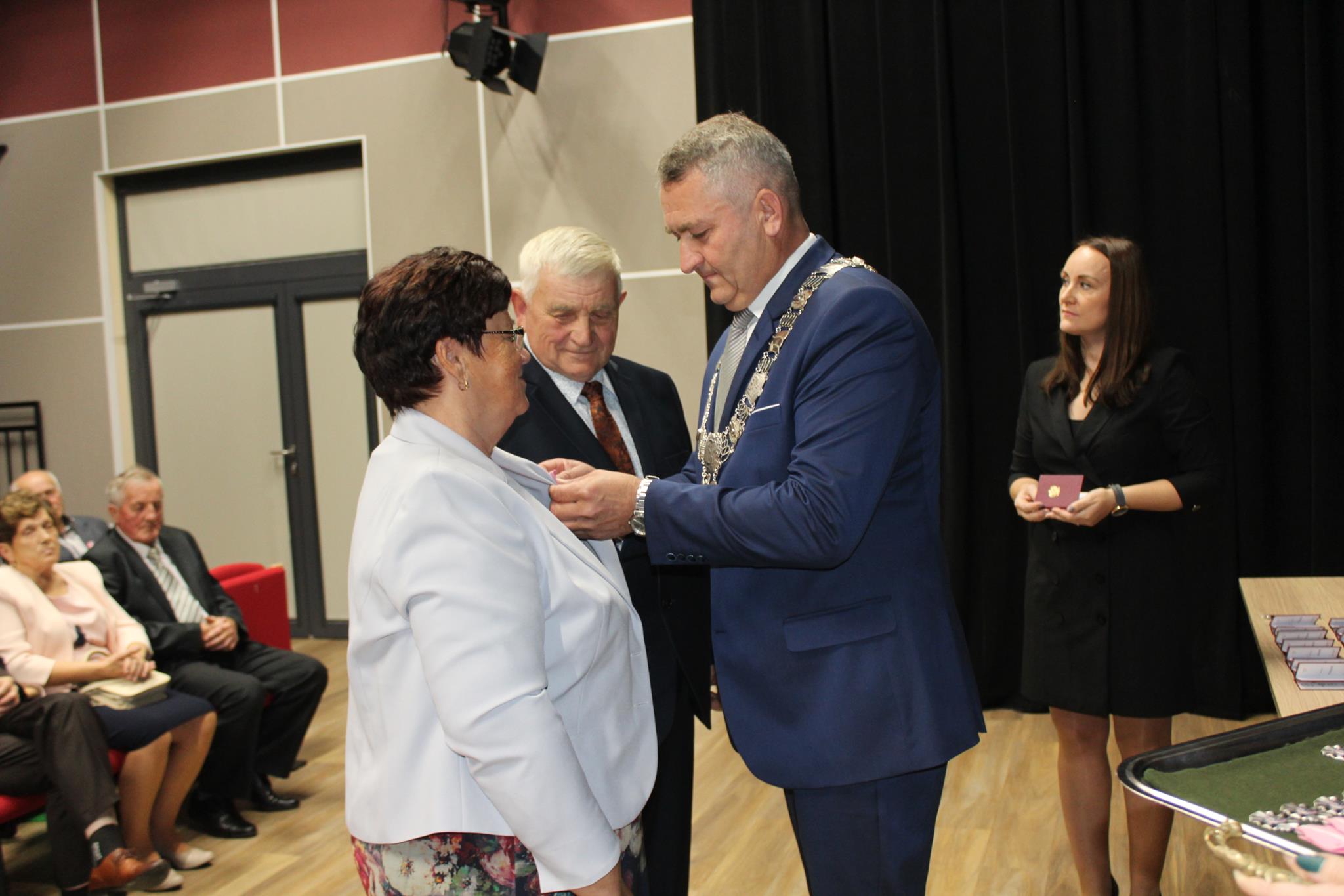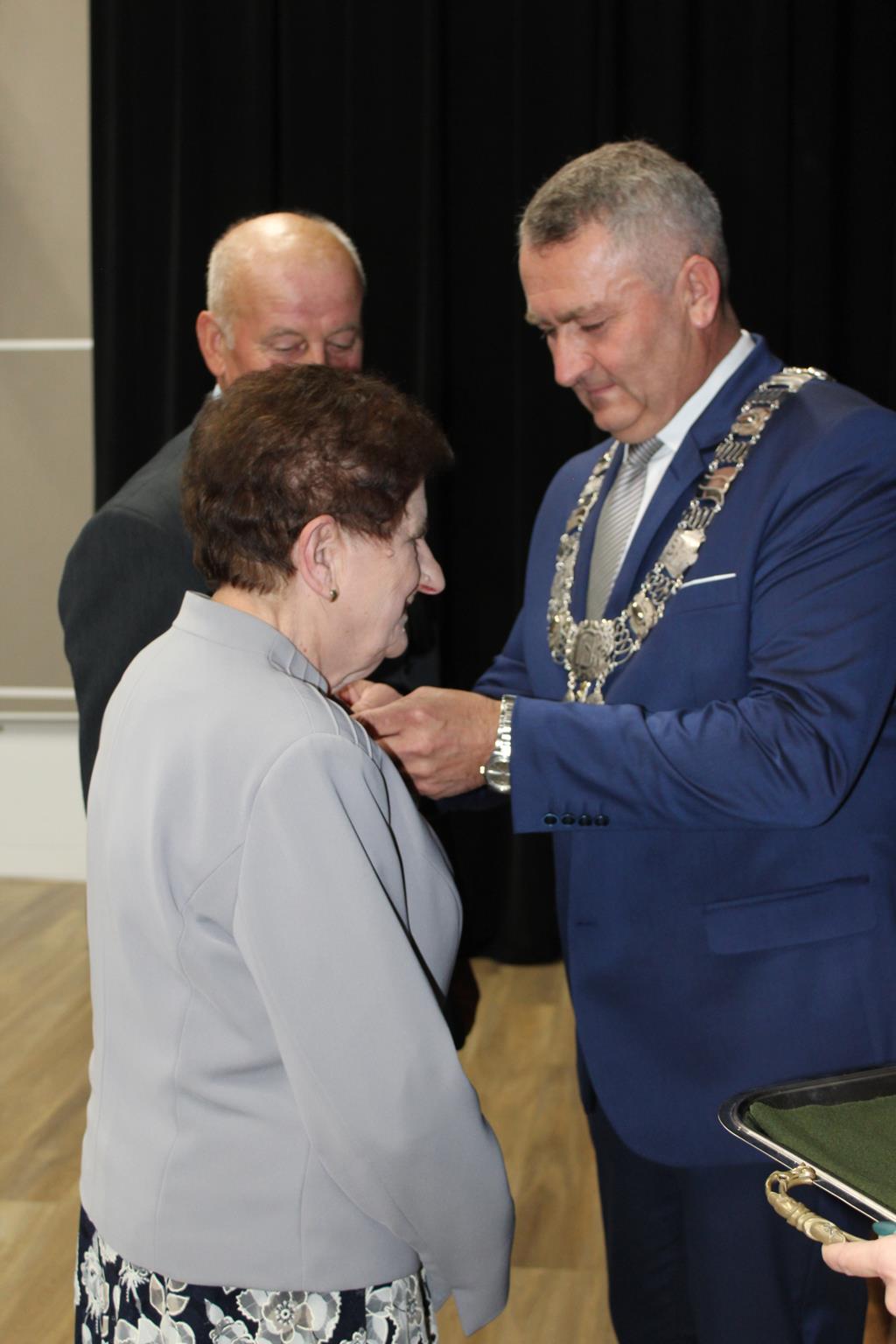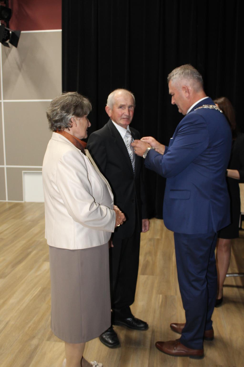 Oprócz medali, wójt Krzysztof Kuliński wręczył jubilatom pamiątkowe dyplomy i upominki. Składając przy okazji gratulacje i życzenia. – Jest to wyjątkowe świadectwo dla młodych pokoleń oraz wzór do naśladowania, jak iść przez życie, przezwyciężając trudności i wspólnie się nim cieszyć. Nie wystarczy pokochać, trzeba jeszcze umieć wziąć tę miłość w ręce i przenieść ją przez całe życie – mówił wójt.