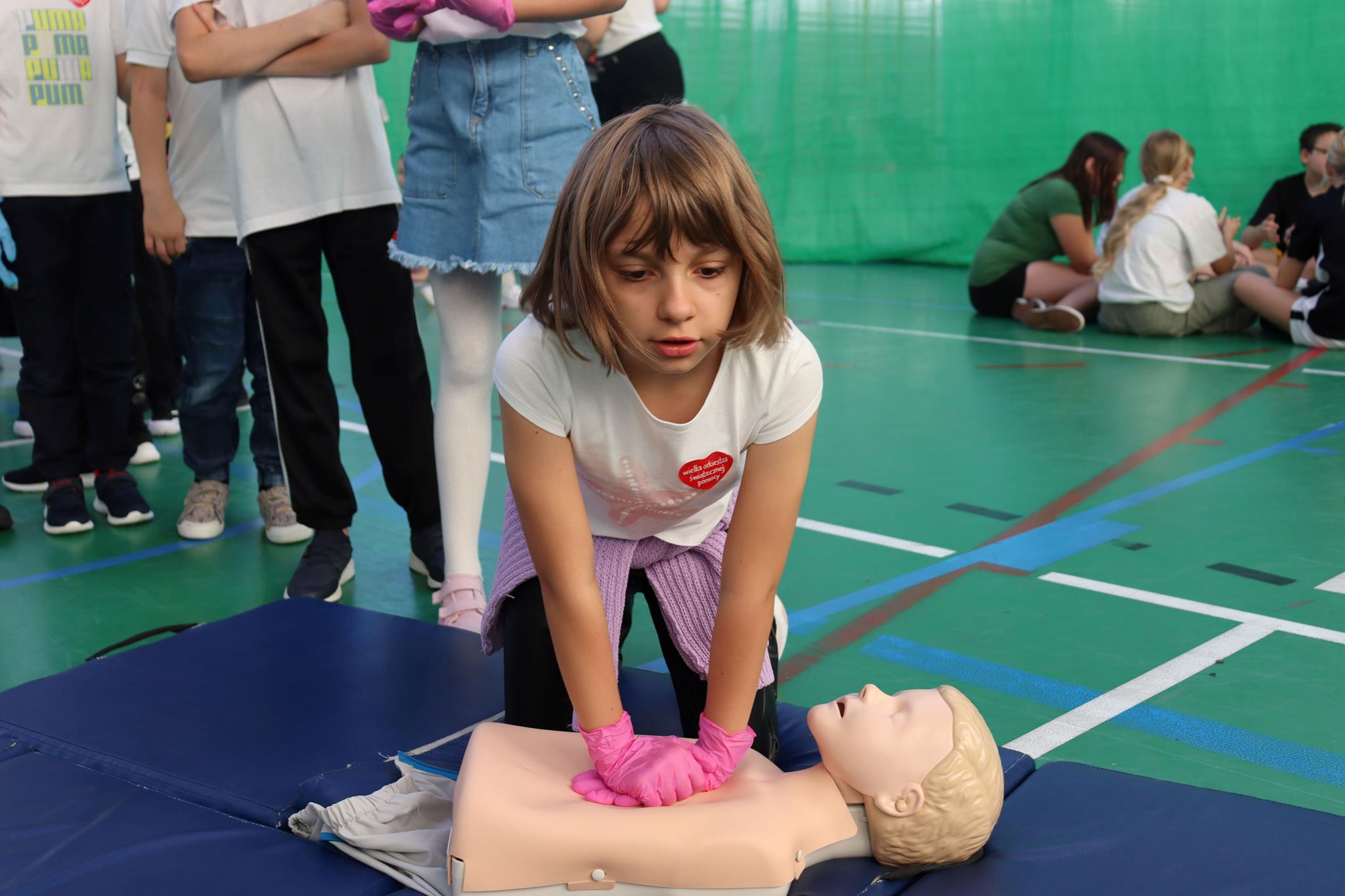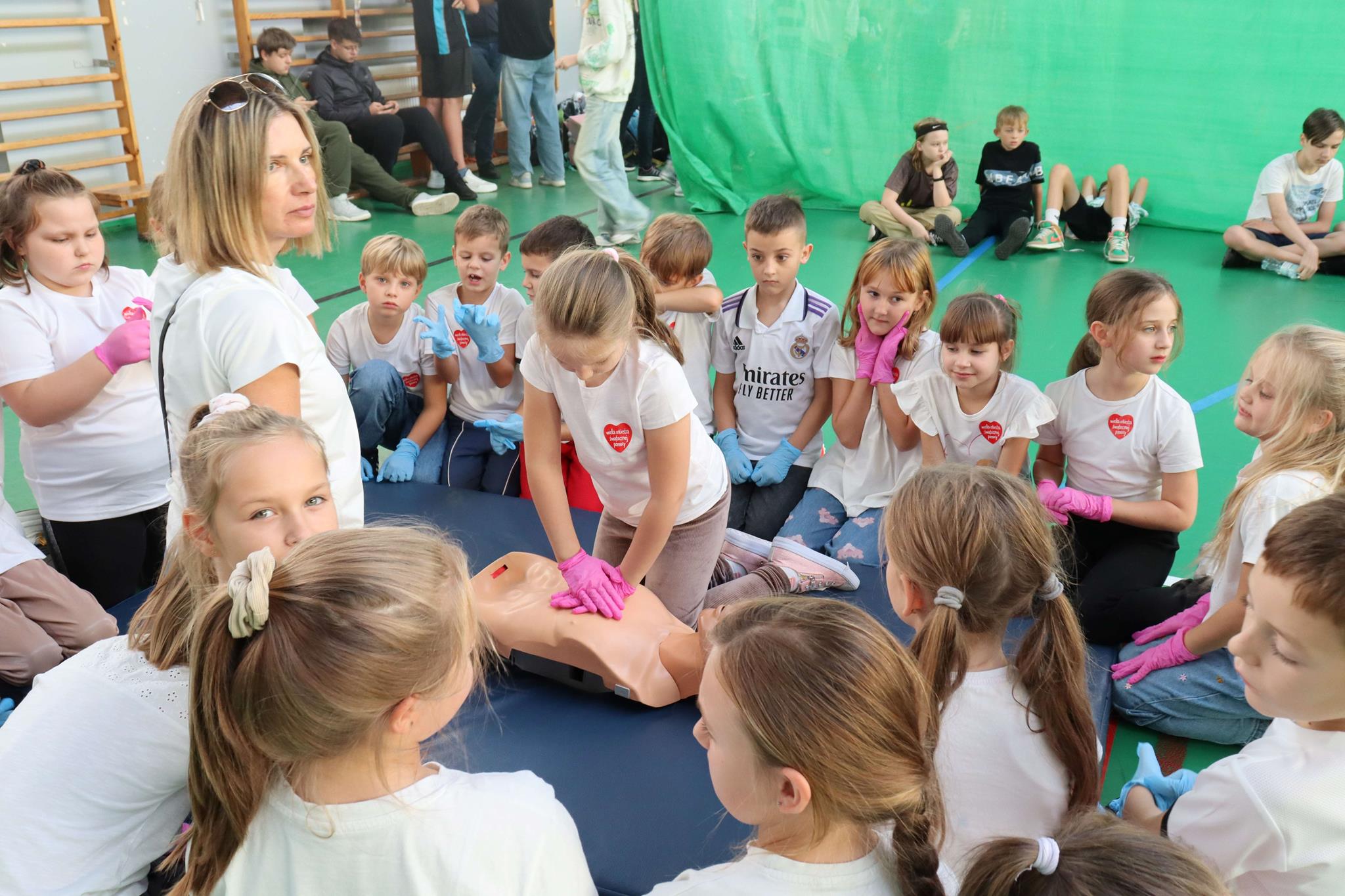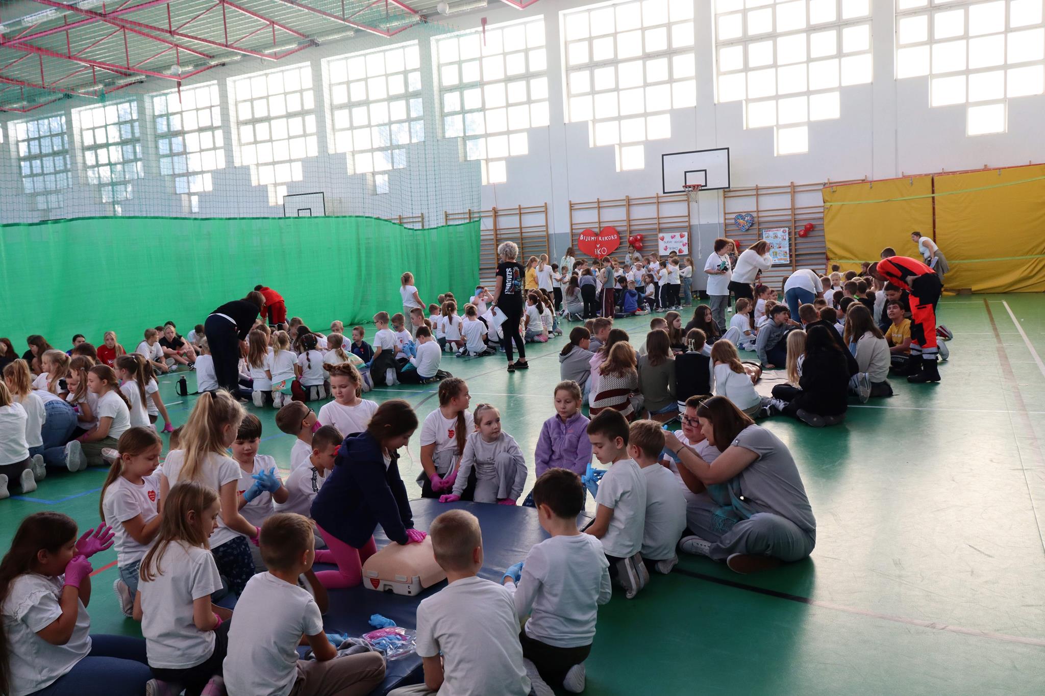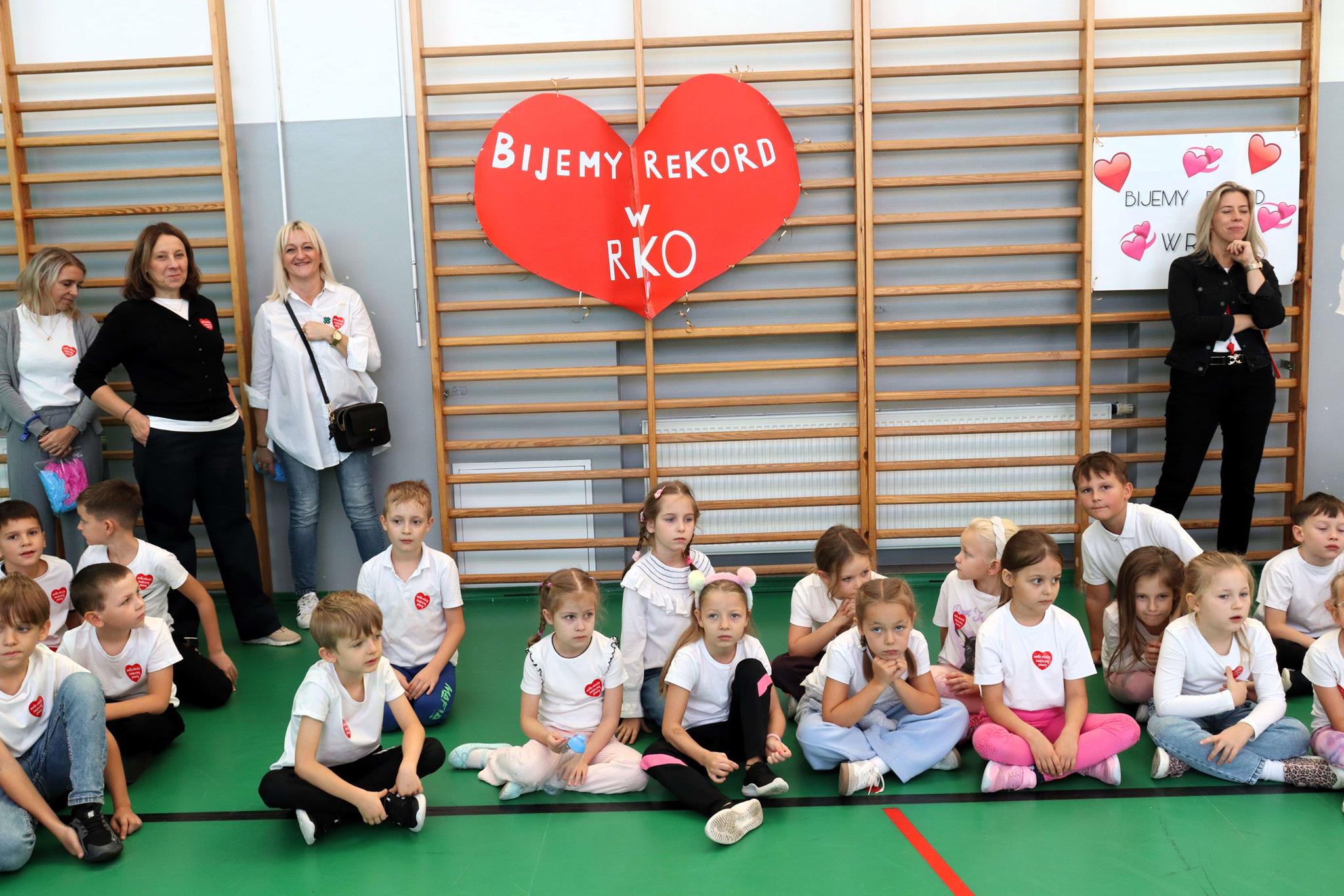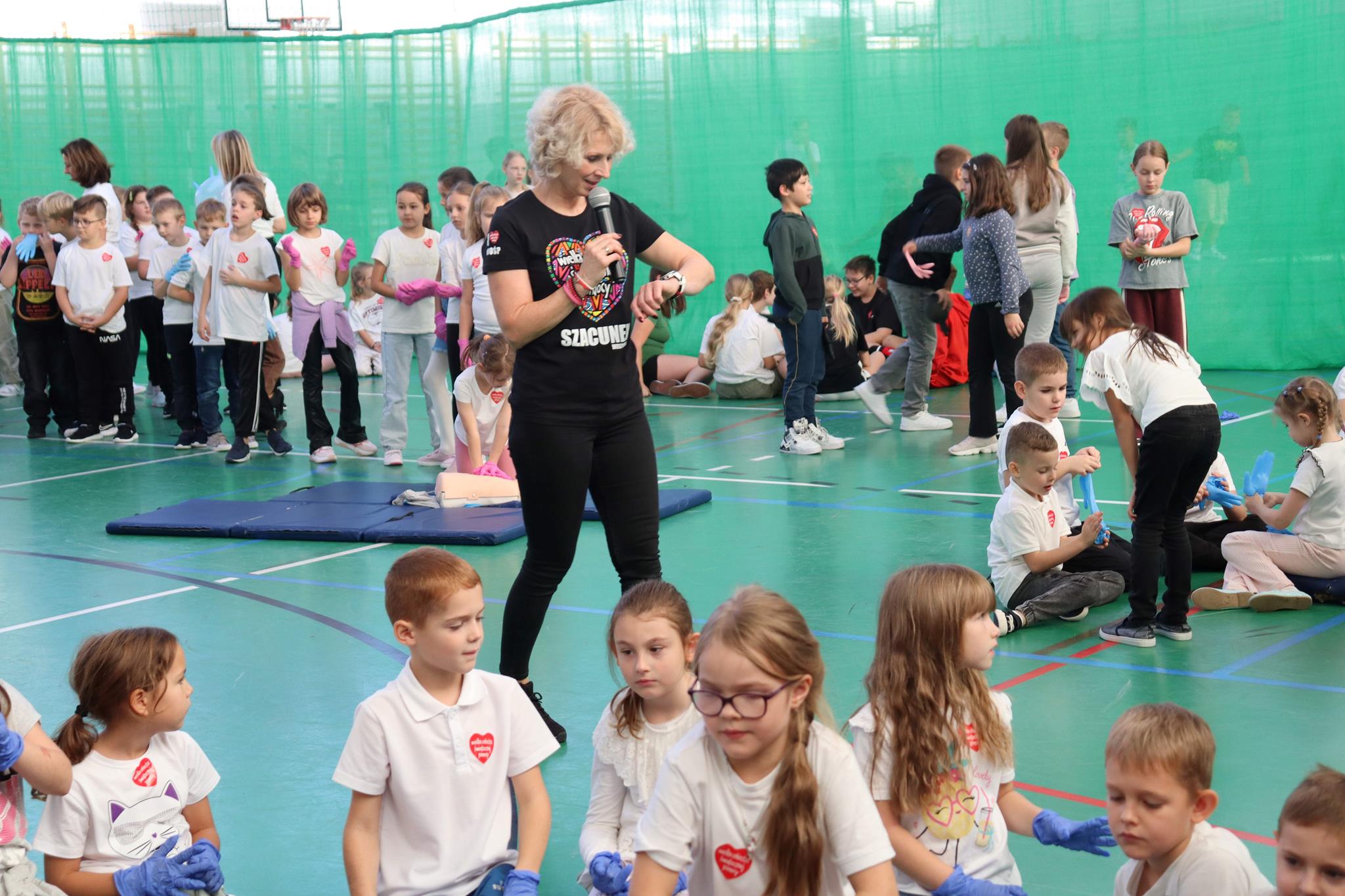 – W akcji uczestniczyli najmłodsi uczniowie naszej szkoły z klas: 1a, 1b, 1c, 1d, 2b, 2c, 2d, i 2e z wychowawcami oraz klasy 5e i 6c, łącznie 238 uczniów. Przez 30 min od godz. 12.00 do godz. 12.30 prowadzona była nieprzerwanie RKO metodą samych uciśnięć klatki piersiowej, tj. bez wdechów, ale zgodnie z regulaminem, każdy uczestnik miał możliwość wykonywania uciśnięć przez 1 minutę – dodaje Marta Szafranek.