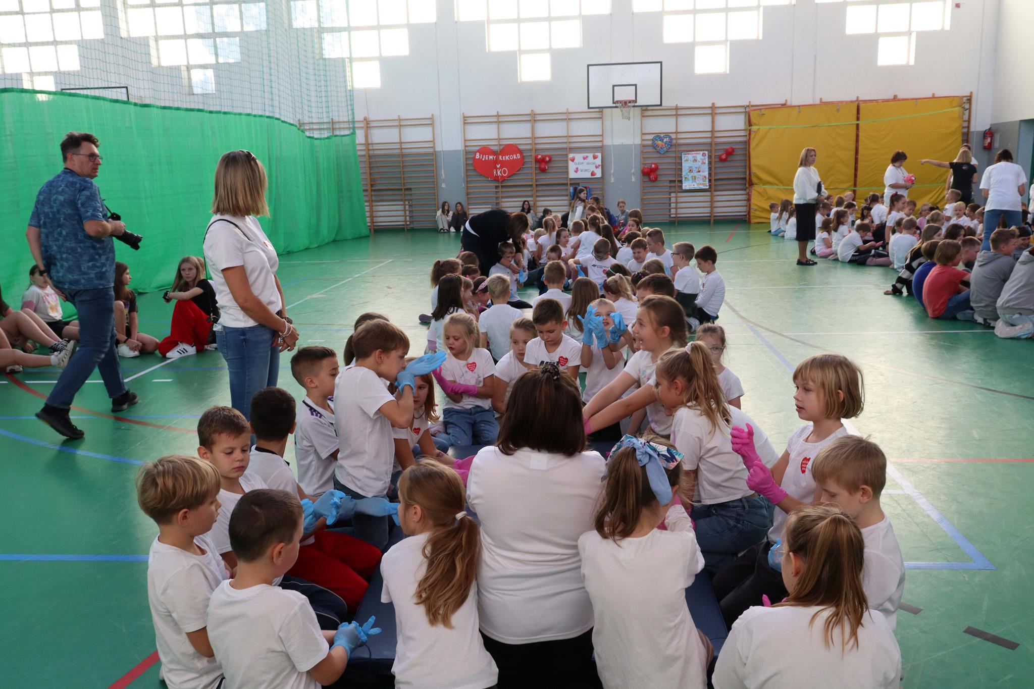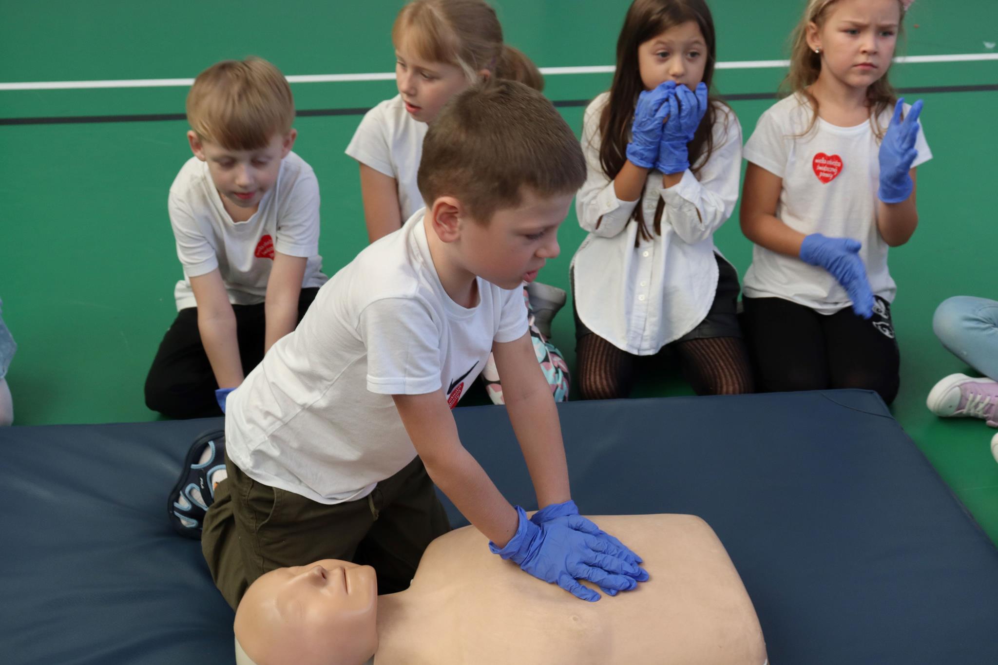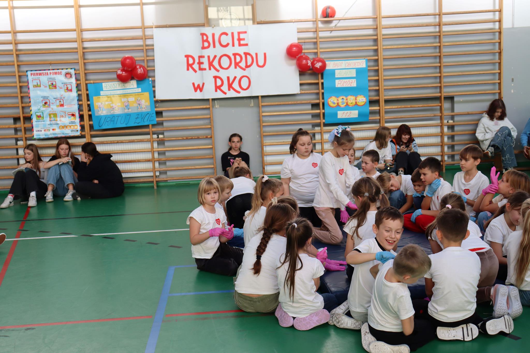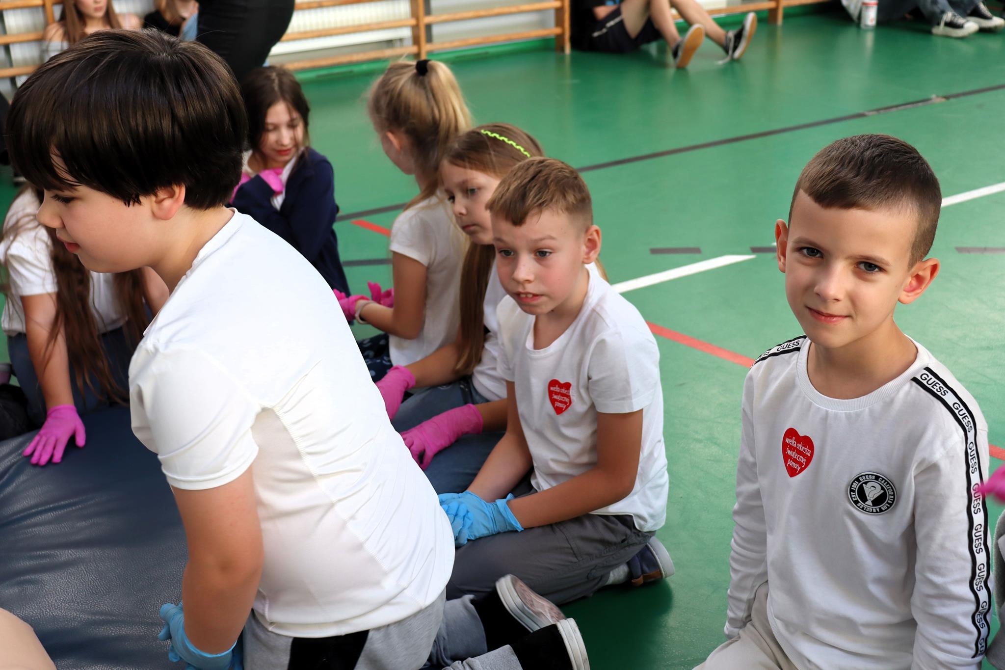 – W akcji uczestniczyli najmłodsi uczniowie naszej szkoły z klas: 1a, 1b, 1c, 1d, 2b, 2c, 2d, i 2e z wychowawcami oraz klasy 5e i 6c, łącznie 238 uczniów. Przez 30 min od godz. 12.00 do godz. 12.30 prowadzona była nieprzerwanie RKO metodą samych uciśnięć klatki piersiowej, tj. bez wdechów, ale zgodnie z regulaminem, każdy uczestnik miał możliwość wykonywania uciśnięć przez 1 minutę – dodaje Marta Szafranek.