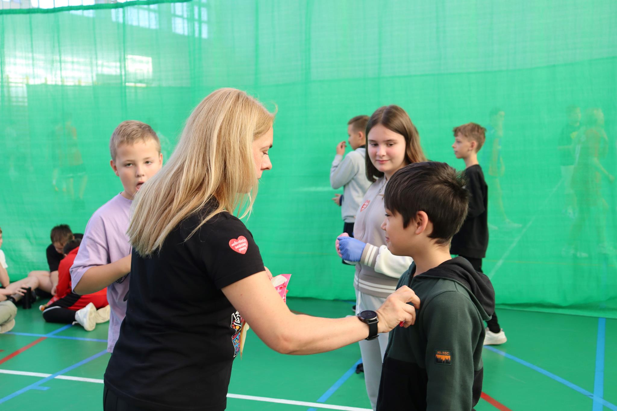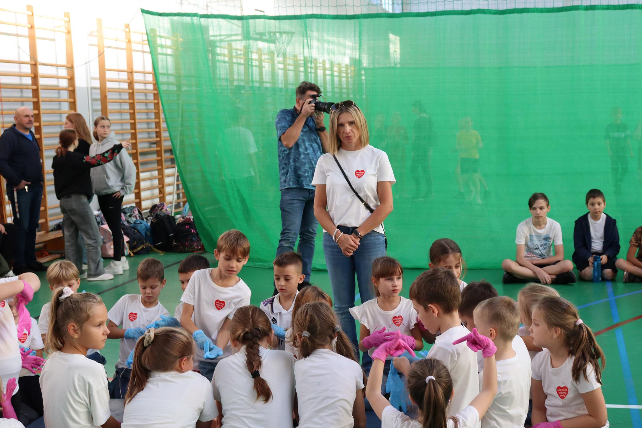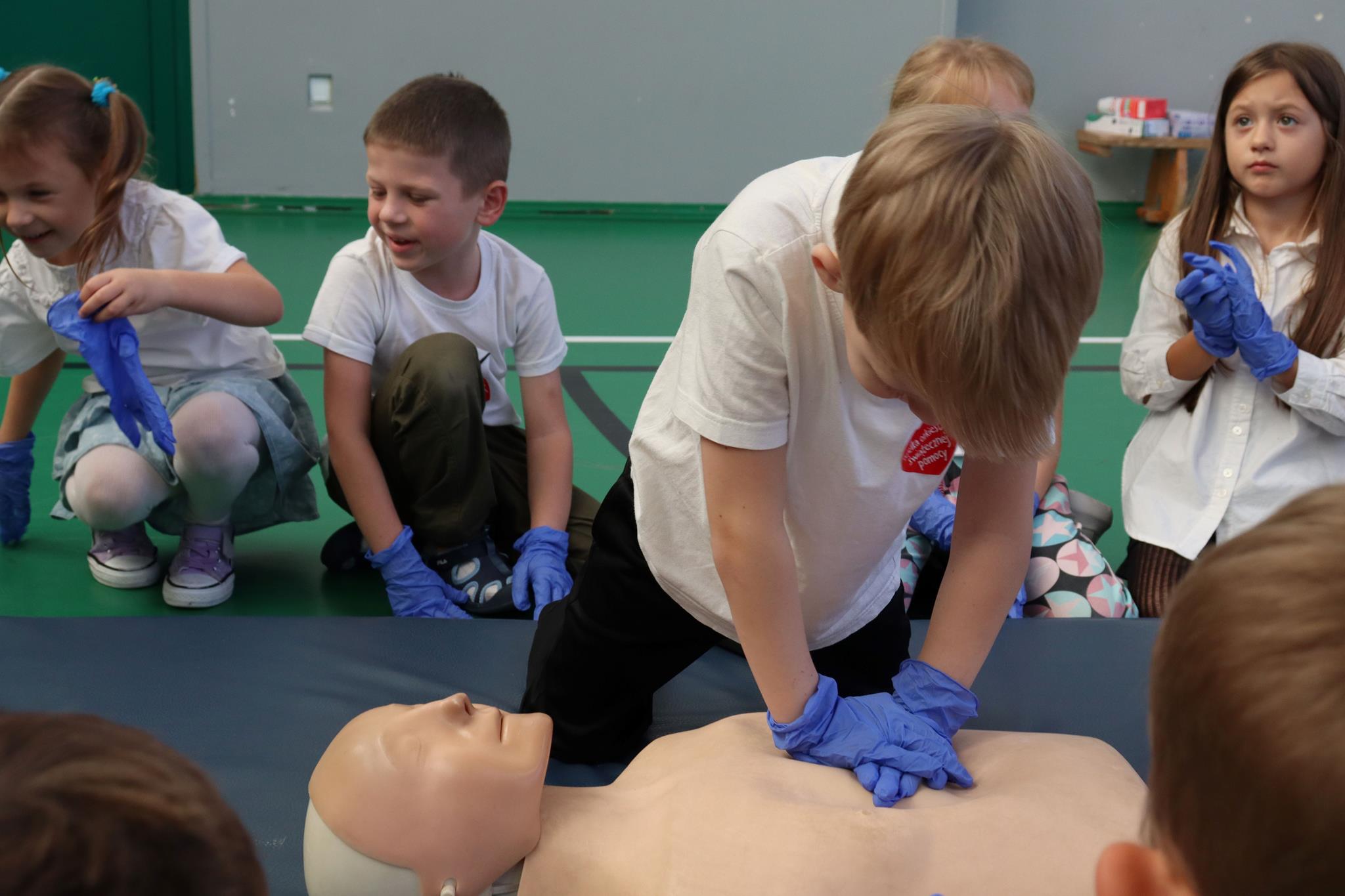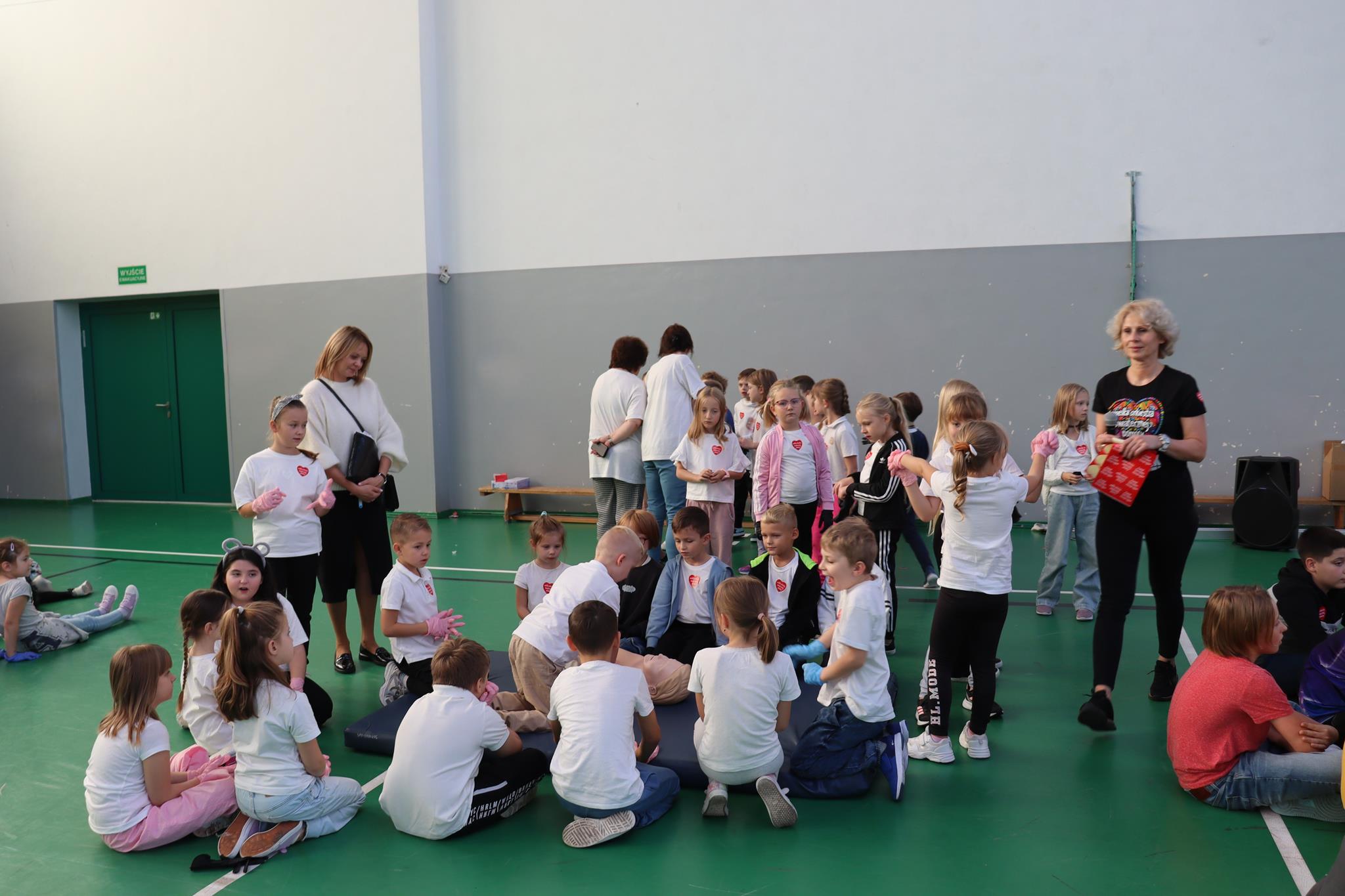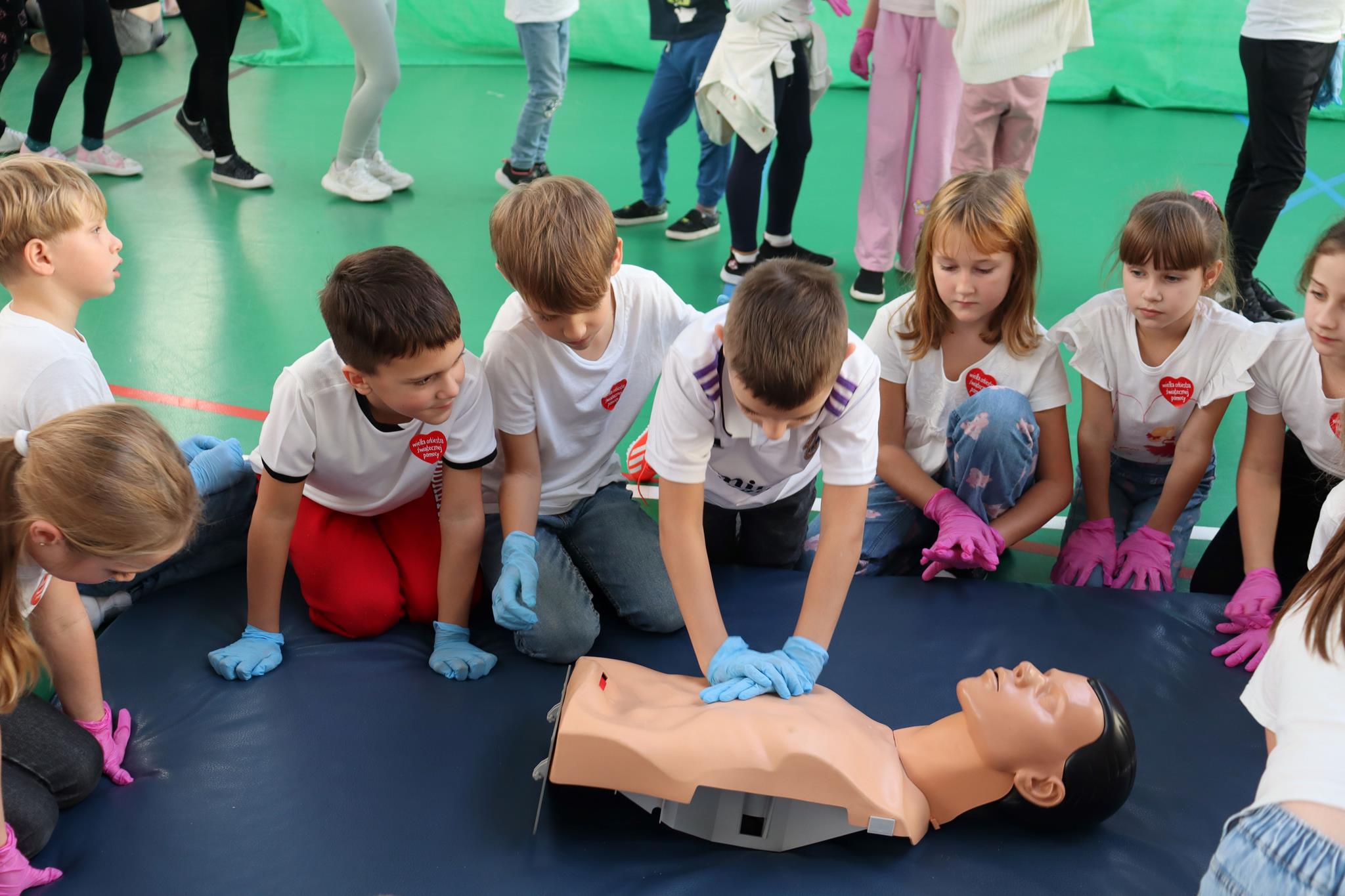 – W akcji uczestniczyli najmłodsi uczniowie naszej szkoły z klas: 1a, 1b, 1c, 1d, 2b, 2c, 2d, i 2e z wychowawcami oraz klasy 5e i 6c, łącznie 238 uczniów. Przez 30 min od godz. 12.00 do godz. 12.30 prowadzona była nieprzerwanie RKO metodą samych uciśnięć klatki piersiowej, tj. bez wdechów, ale zgodnie z regulaminem, każdy uczestnik miał możliwość wykonywania uciśnięć przez 1 minutę – dodaje Marta Szafranek.