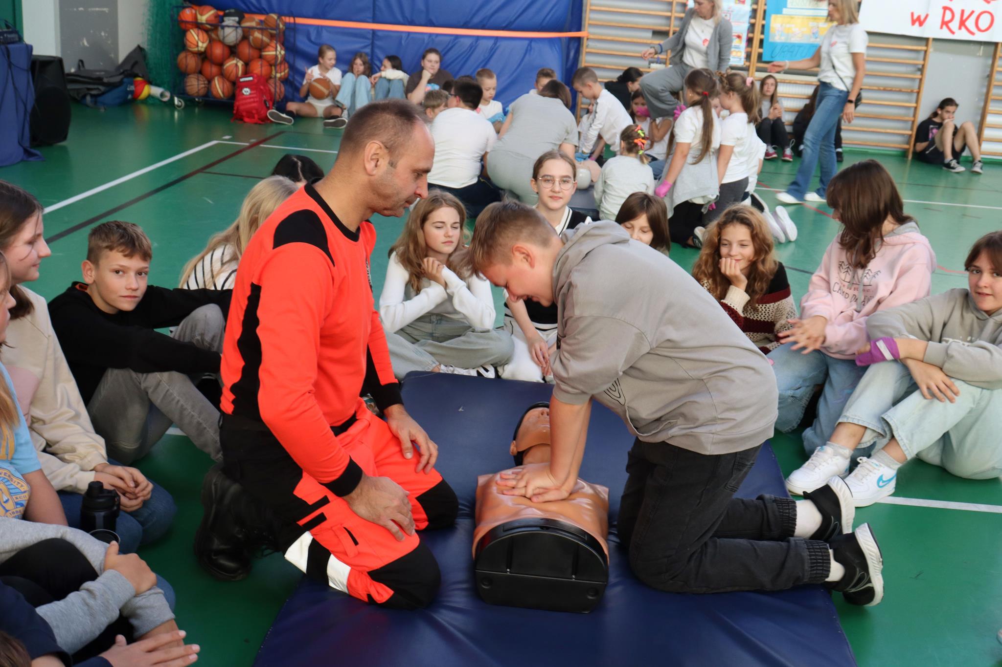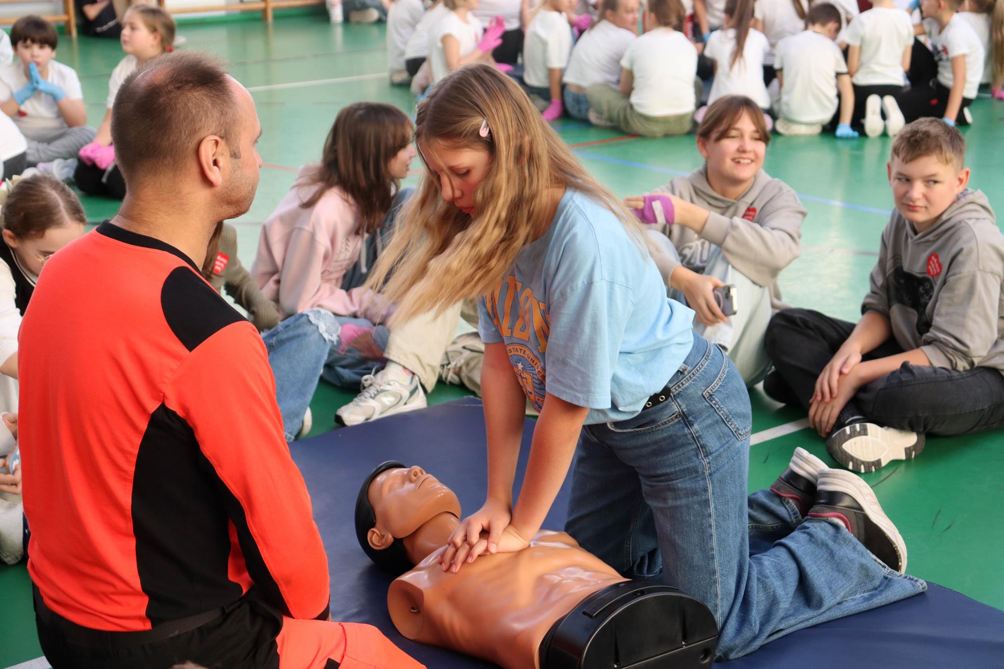 – W Szkole Podstawowej nr 2, bicie rekordu zostało poprzedzone szkoleniem przeprowadzonym przez ratownika medycznego Rafała Nadajewskiego, który nie tylko zademonstrował, jak poprawnie wykonywać resuscytację krążeniowo-oddechową, ale także uświadomił wszystkich o konieczności podjęcia uciskania klatki piersiowej w przypadku nagłego zatrzymania krążenia, ponieważ aż trzykrotnie wzrasta wtedy szansa na przeżycie osoby poszkodowanej – wyjaśnia Urszula Samborska, nauczycielka SP2.