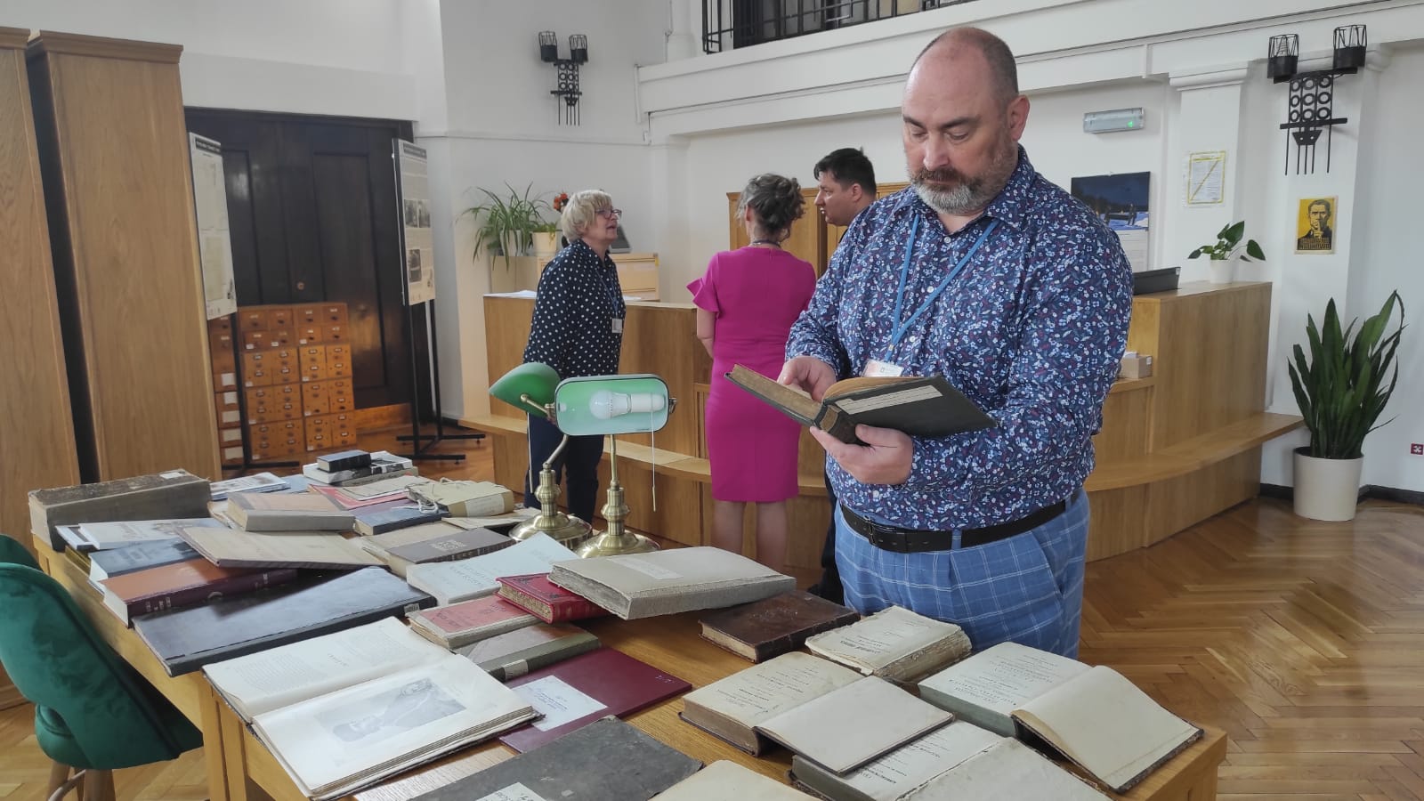 – Stereotyp zawodu archiwisty przedstawia nas jako starszego jegomościa, w zarękawkach, w okularach ze szkłami jak denka słoików, otoczonego pajęczynami, a to jest oczywiście nieprawda. Jesteśmy urzędami bardzo nowoczesnym i przechodzimy na dokumenty cyfrowe – zapewnia dr Tomasz Matuszak, dyrektor placówki. – Mamy przecież rozwinięte archiwum dokumentów elektronicznych. Natomiast dzisiaj, z okazji 15. międzynarodowego dnia archiwów, przygotowaliśmy aż 5 różnych wystaw. Mamy dwie duże wystawy stacjonarne, mamy wystawę numizmatów nawiązują do postaci mieszkańca Piotrkowa Kazimierza Stronczyńskiego, mamy warsztaty numizmatyczne, ciekawe publikacje z naszego przebogatego księgozbioru, a także dokumenty związane z projektem Archiwa Rodzinne Niepodległej – dodaje.